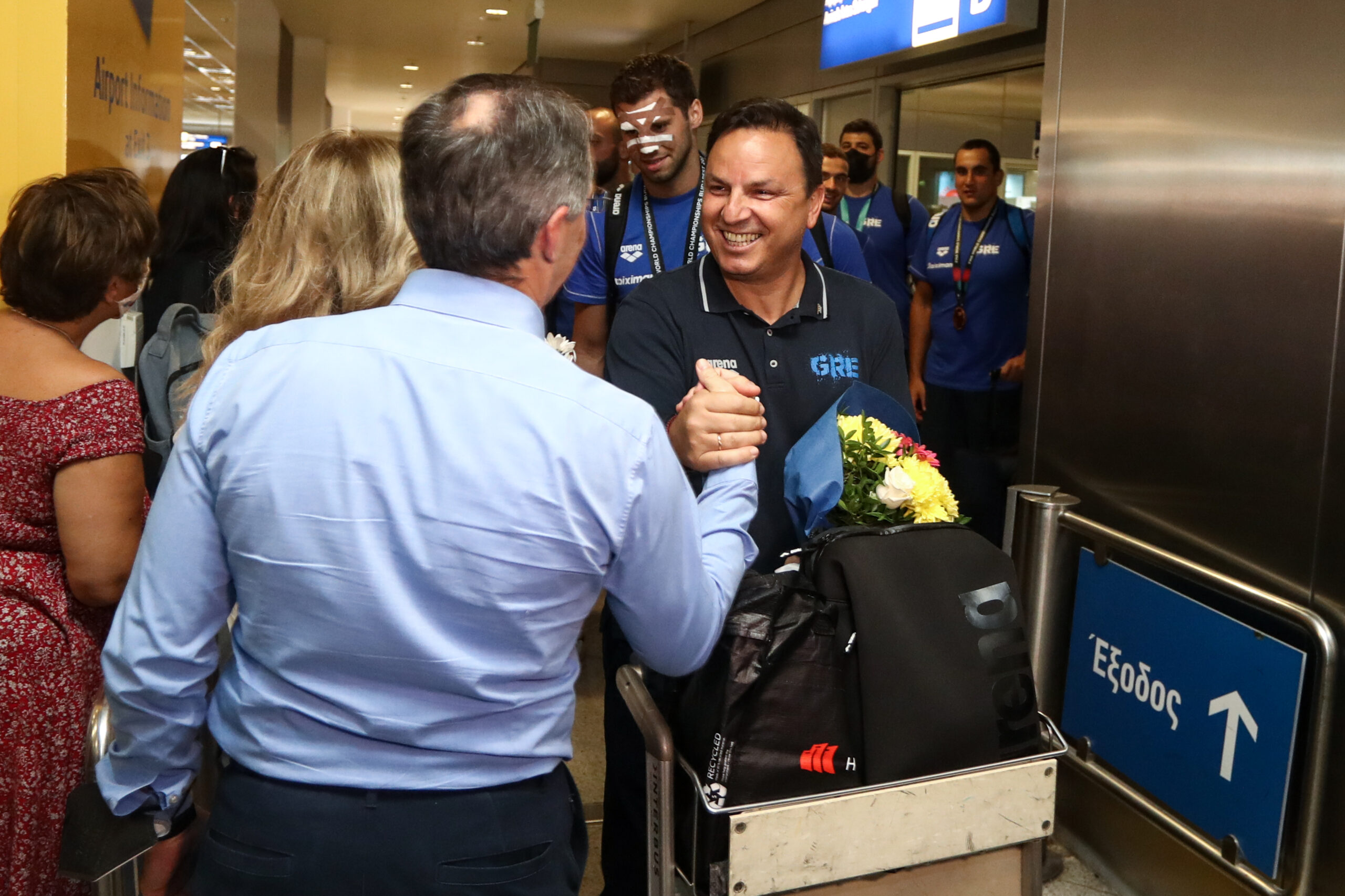 Οι αργυροί Παγκόσμιοι Πρωταθλητές, έφθασαν στην Αθήνα και γνώρισαν αποθεωτική υποδοχή από φίλους, συγγενείς αλλά και φιλάθλους. Εκεί βρέθηκε και ο Γενικός Γραμματέας Αθλητισμού Γιώργος Μαυρωτάς.