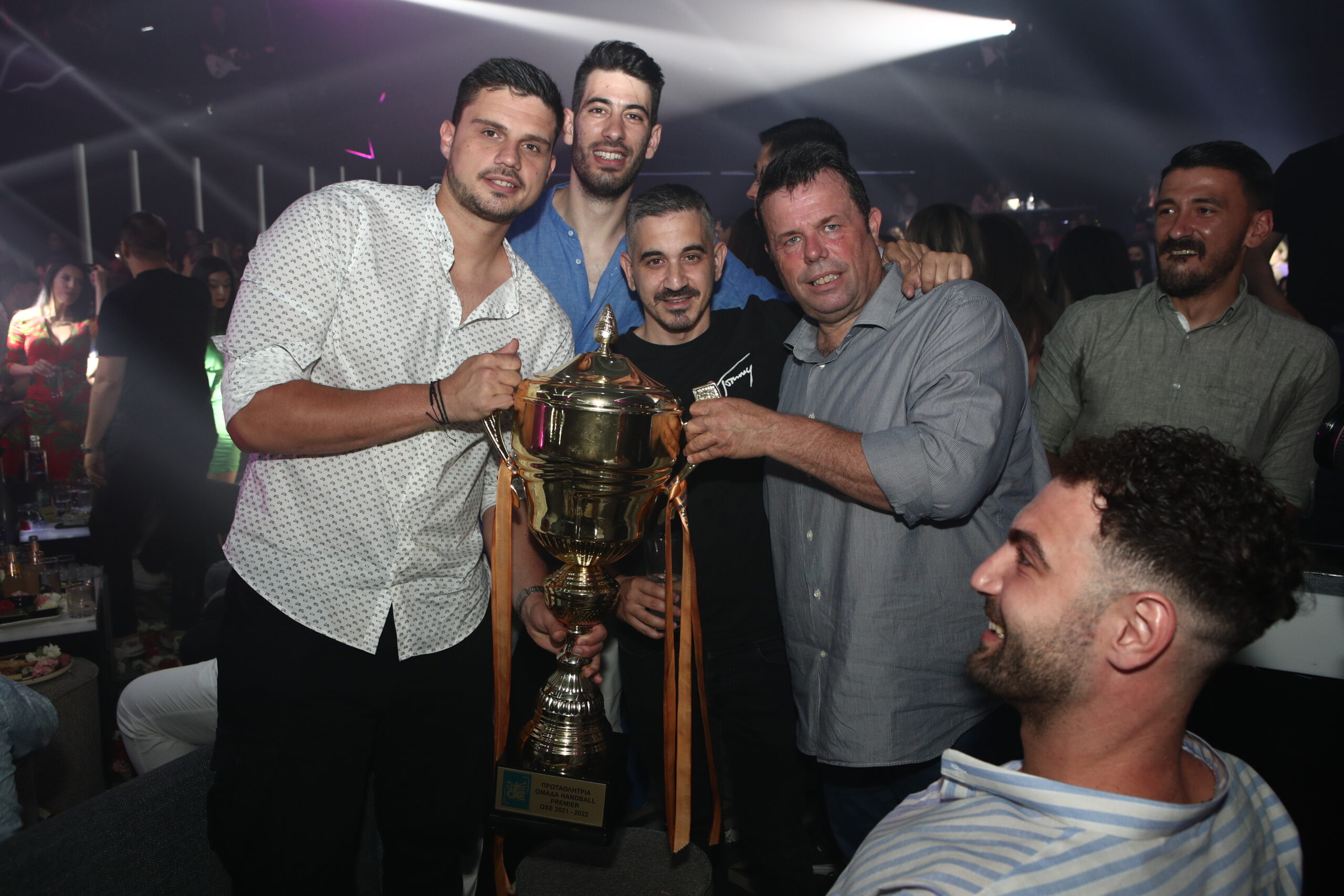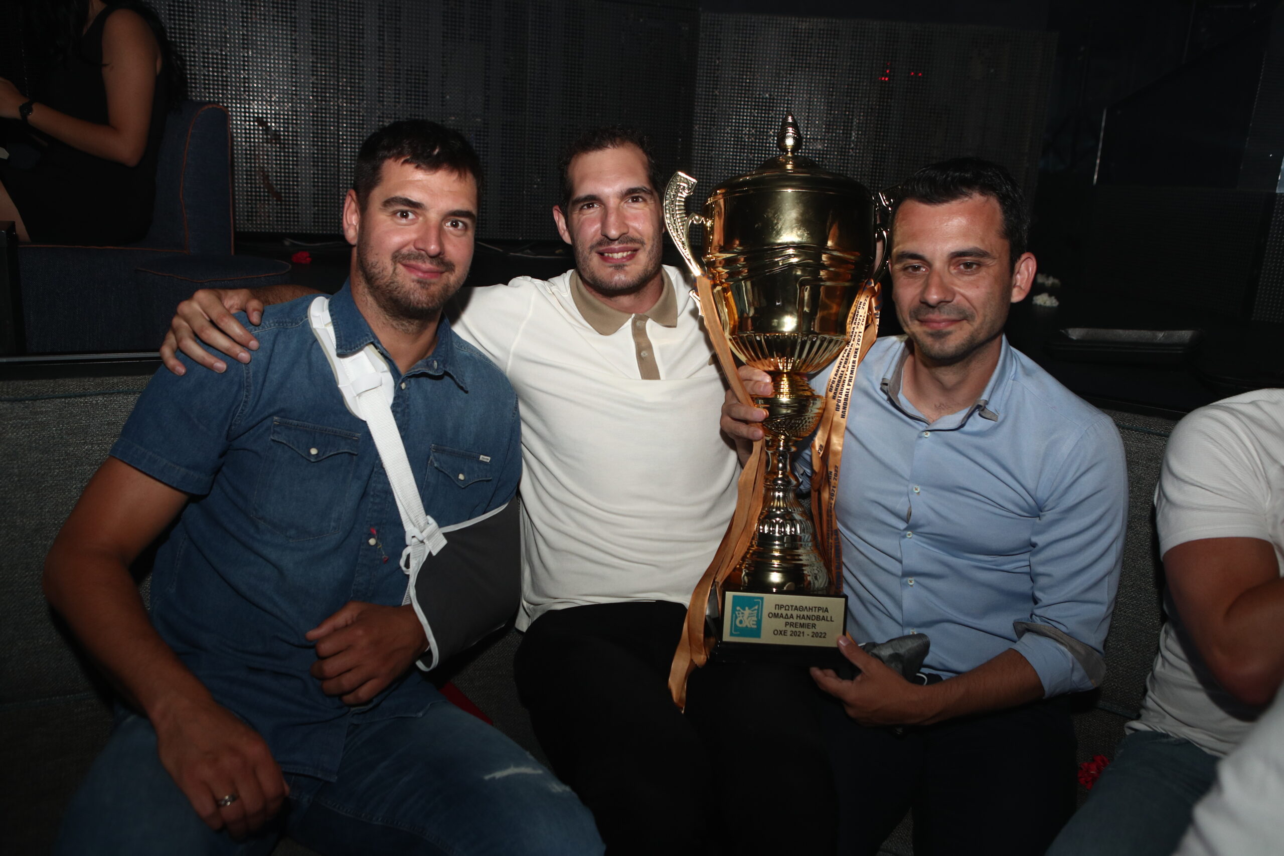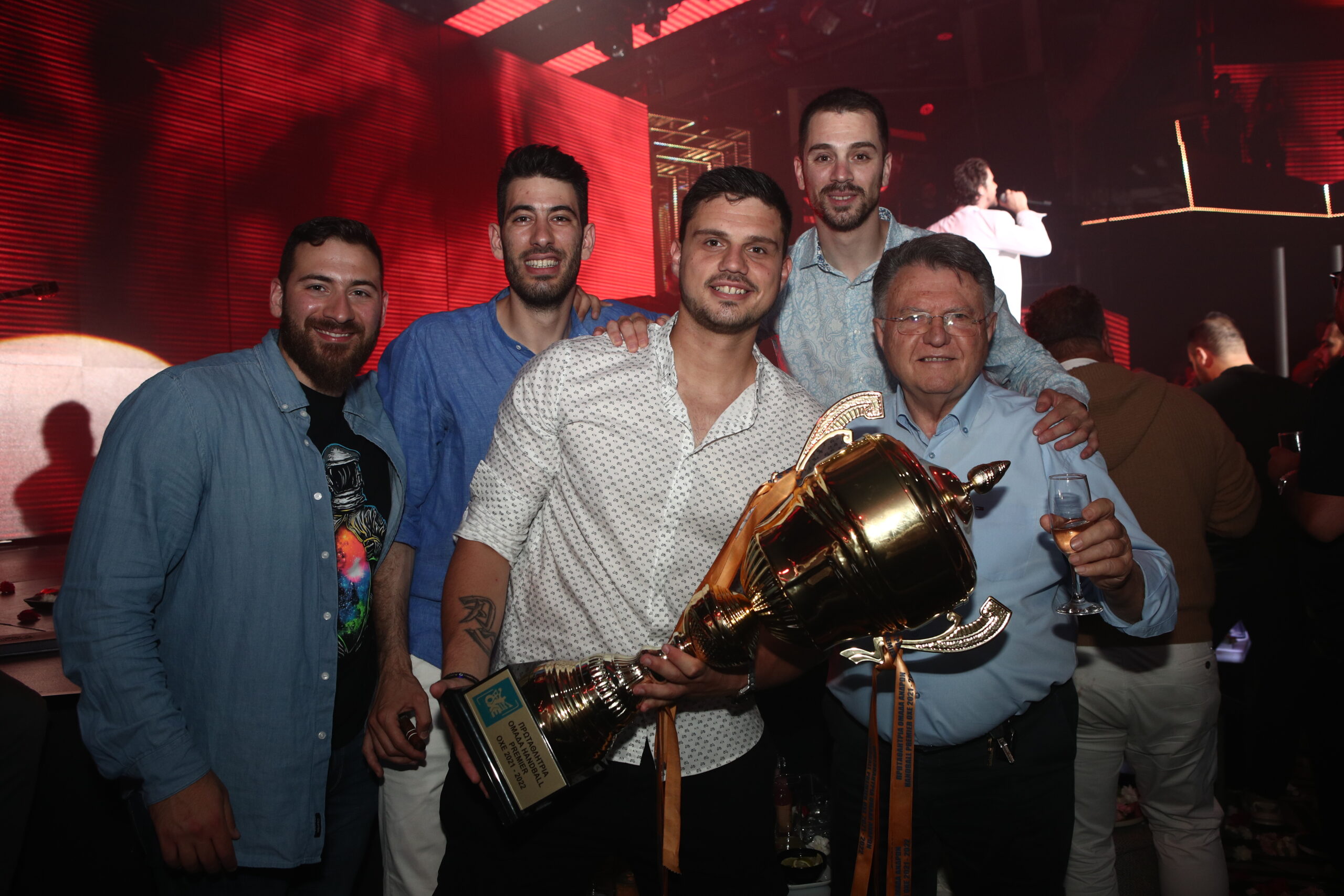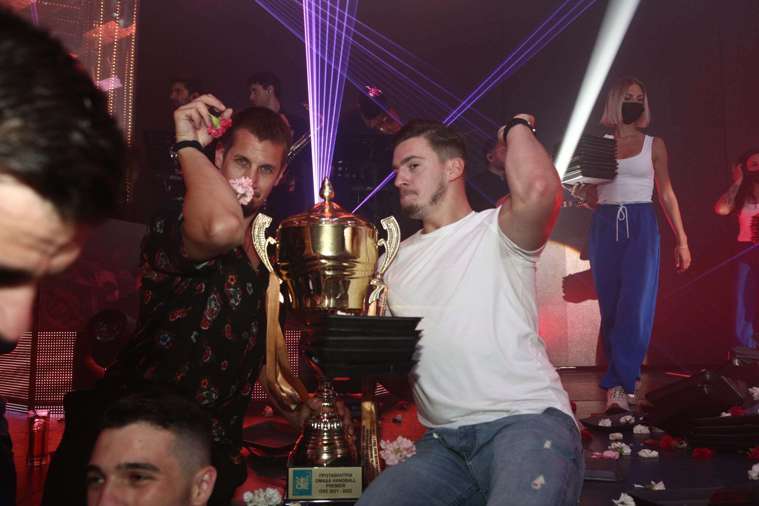 Οι παίκτες της ομάδας Χαντμπολ του Ολυμπιακού, διασκέδασαν με την ψυχή τους με την κούπα του Πρωταθλητή.