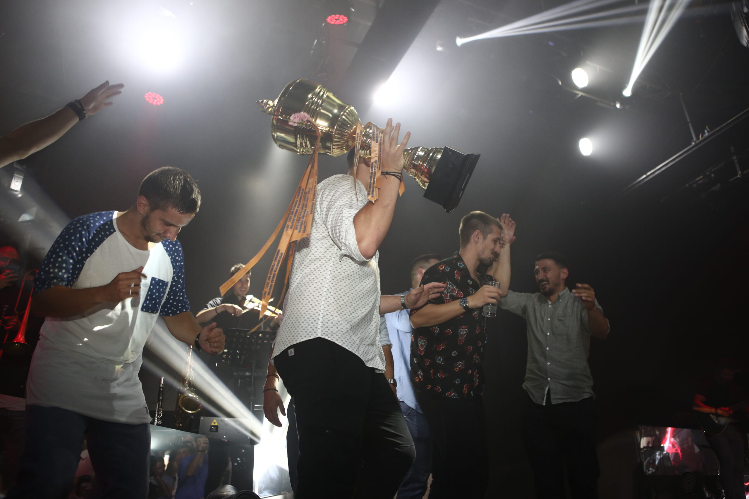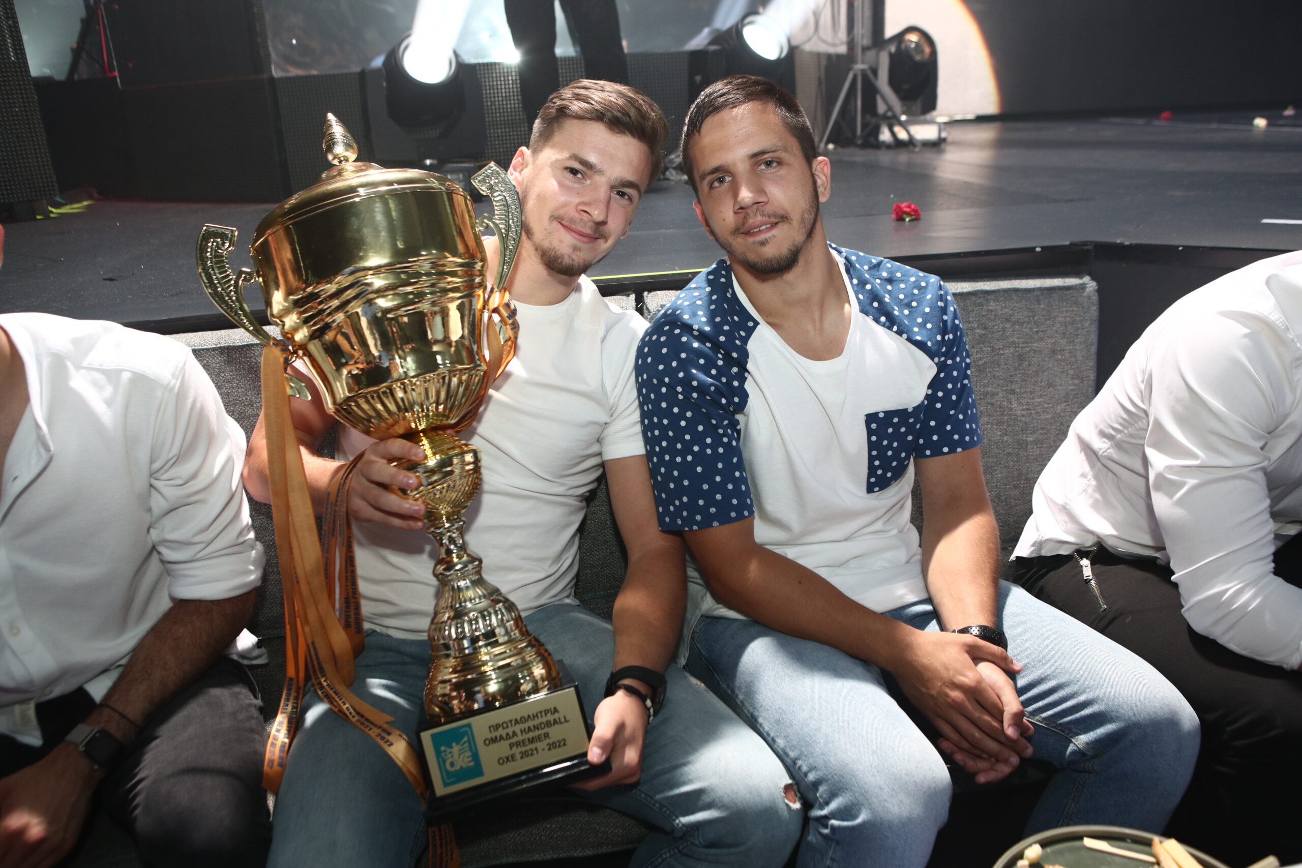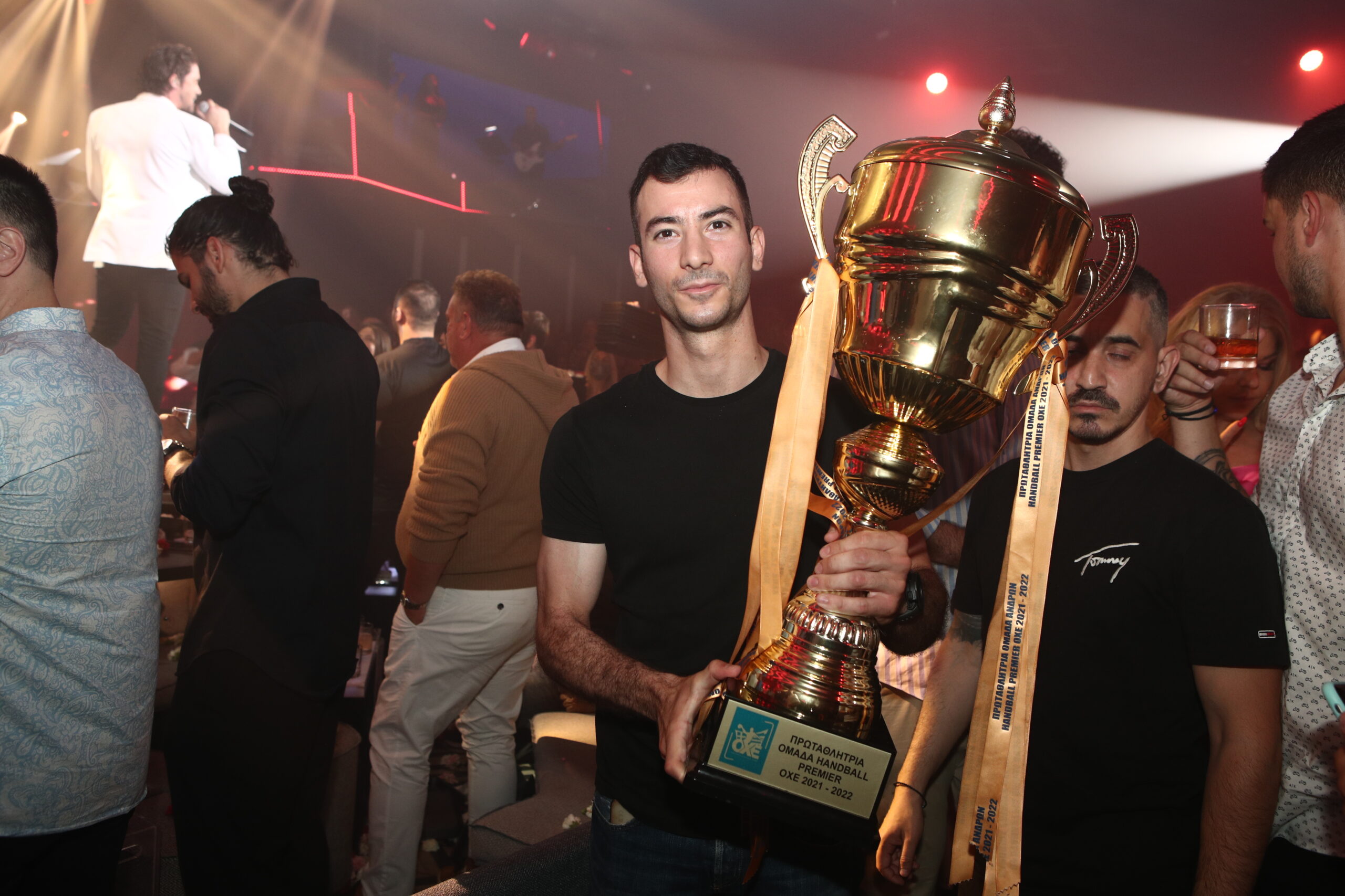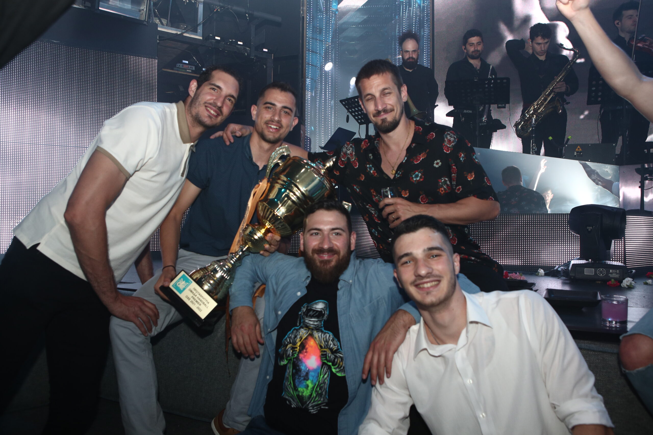 Οι παίκτες της ομάδας Χαντμπολ του Ολυμπιακού, διασκέδασαν με την ψυχή τους με την κούπα του Πρωταθλητή.