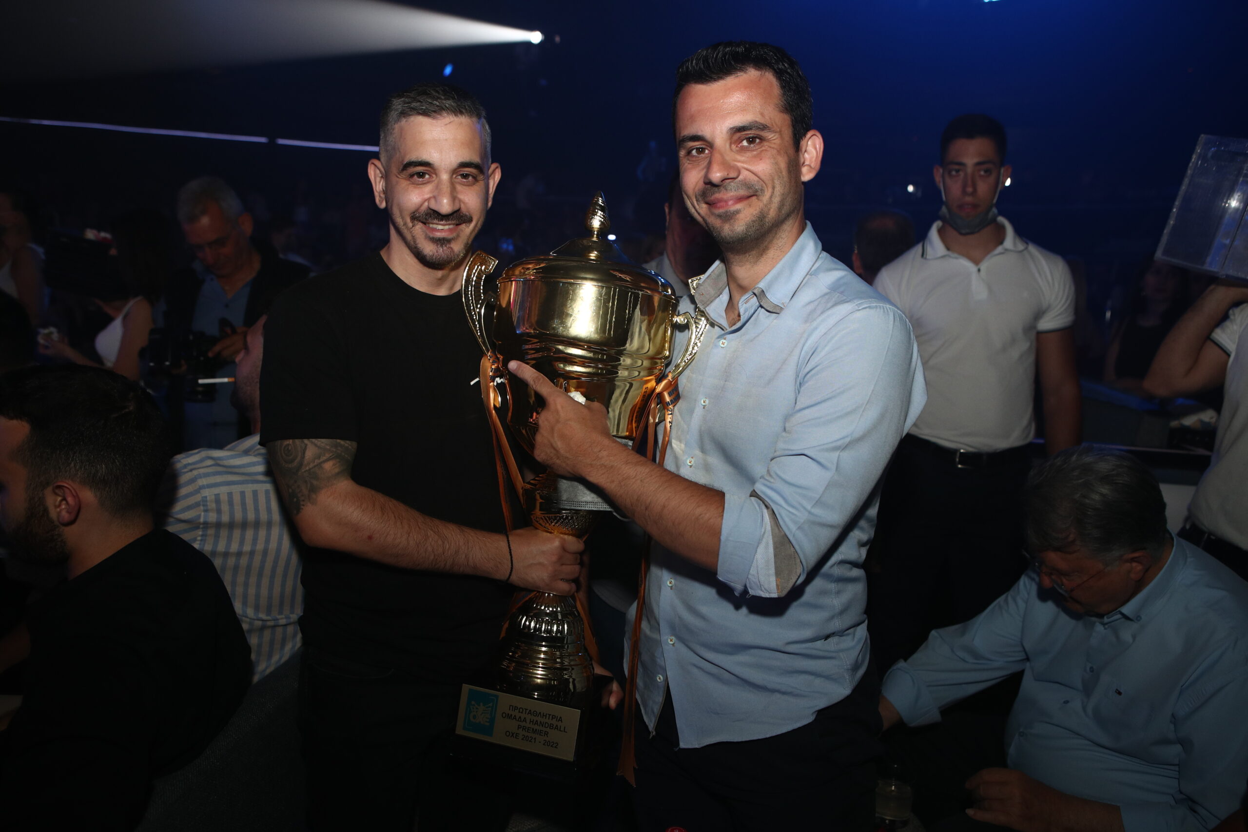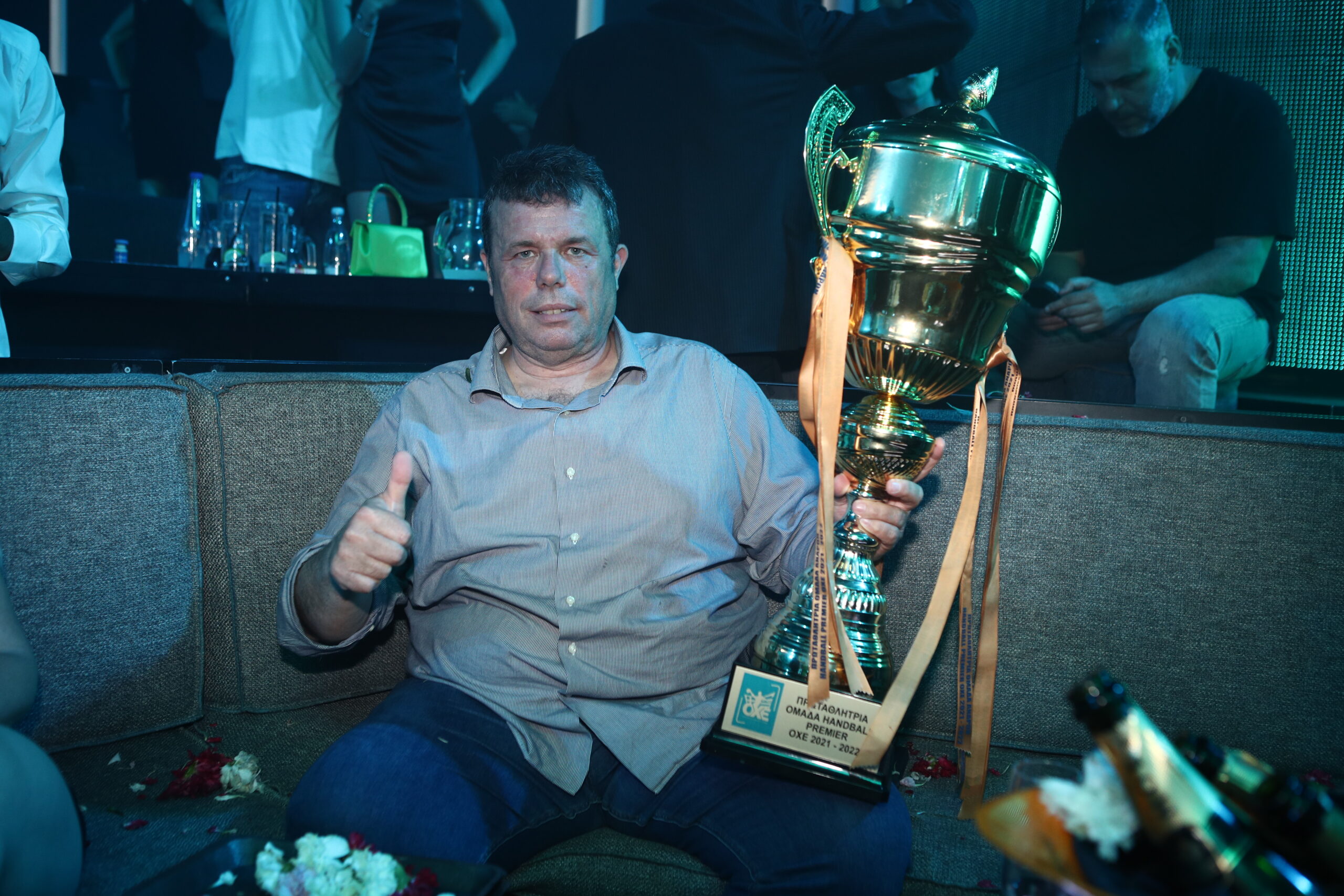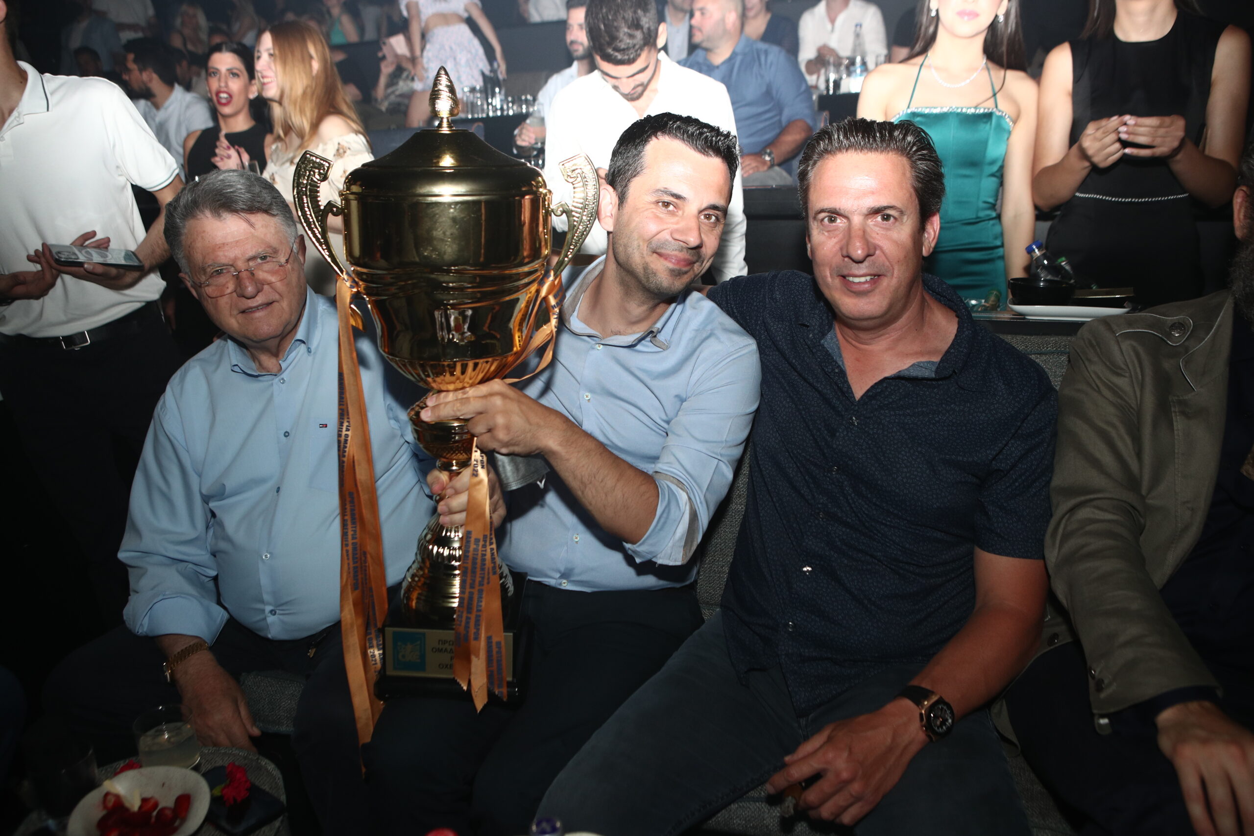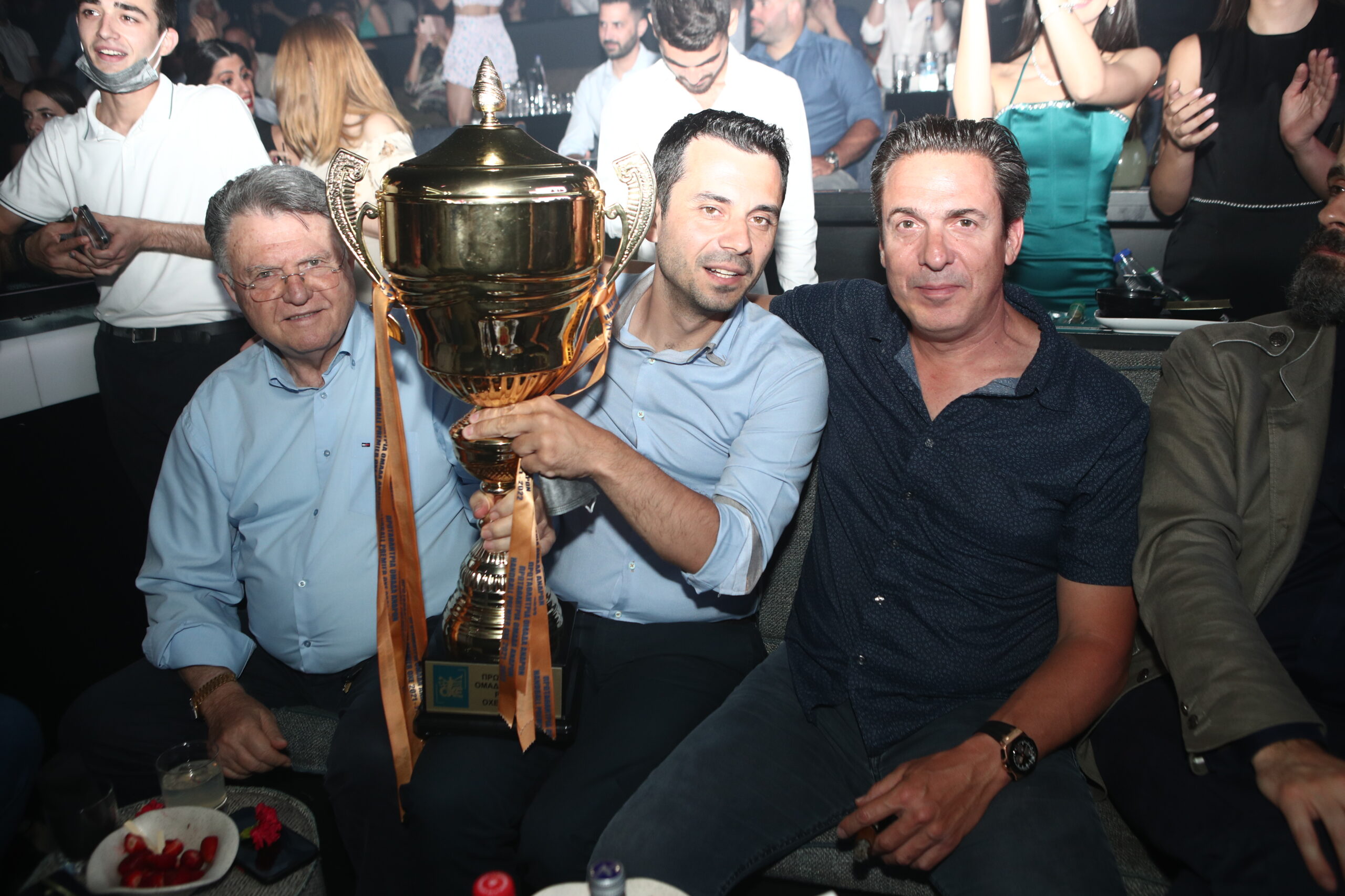 Οι παίκτες της ομάδας Χαντμπολ του Ολυμπιακού, διασκέδασαν με την ψυχή τους με την κούπα του Πρωταθλητή.