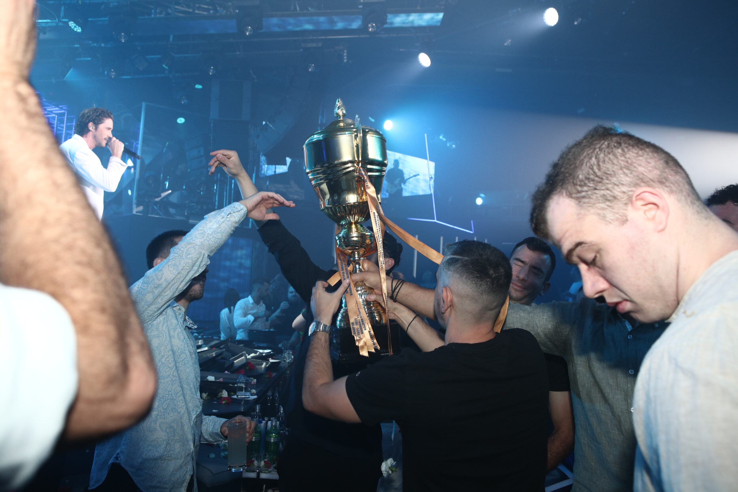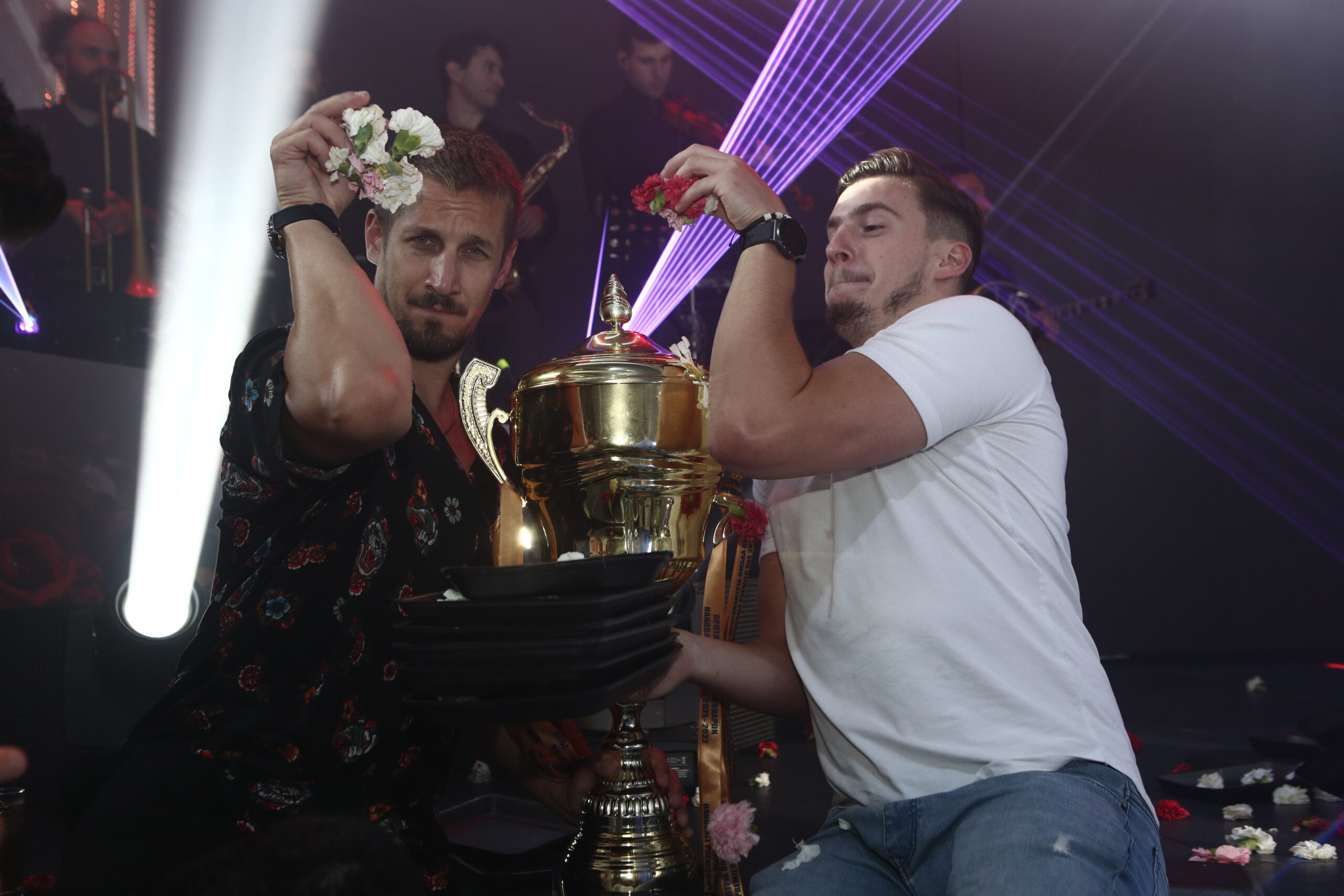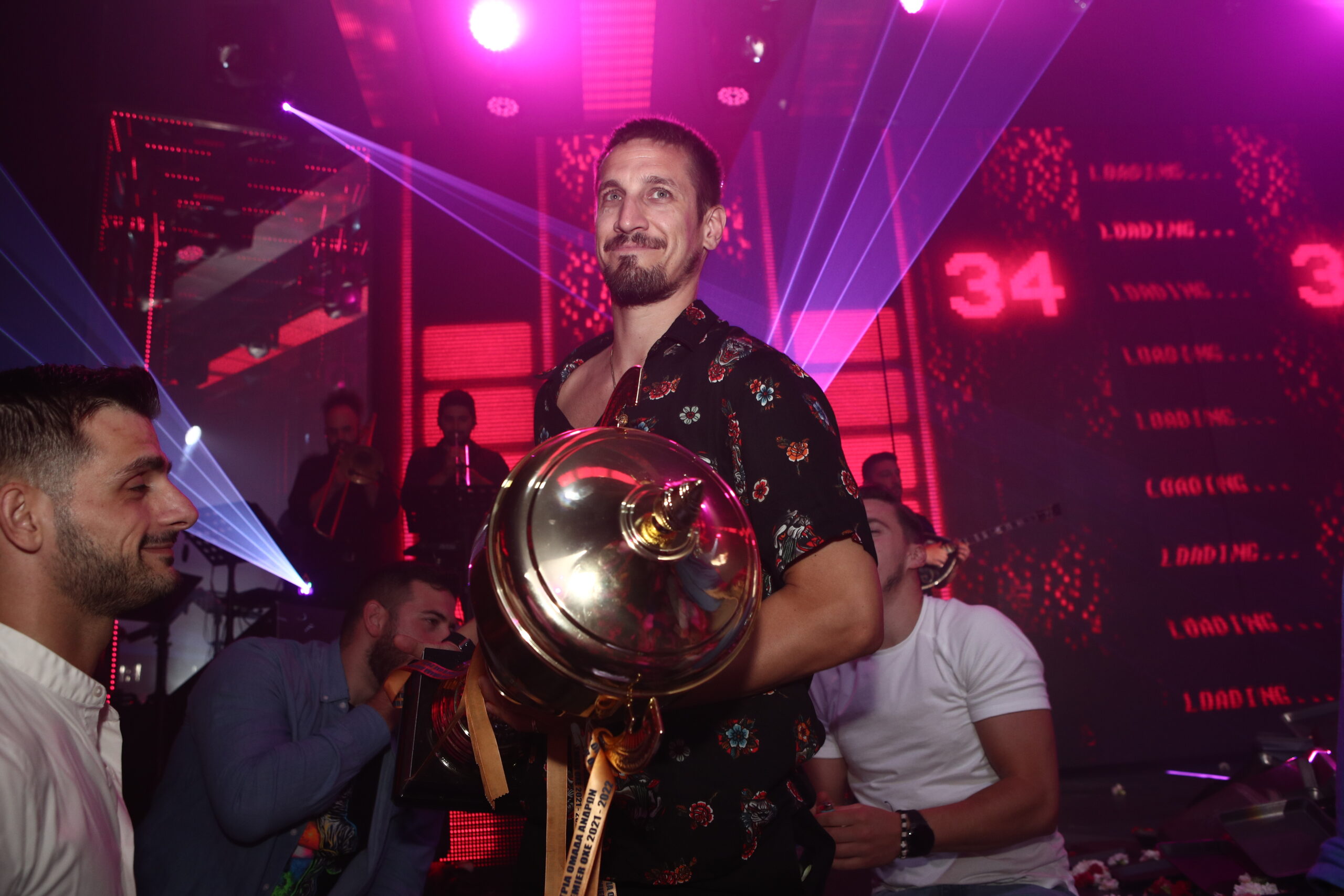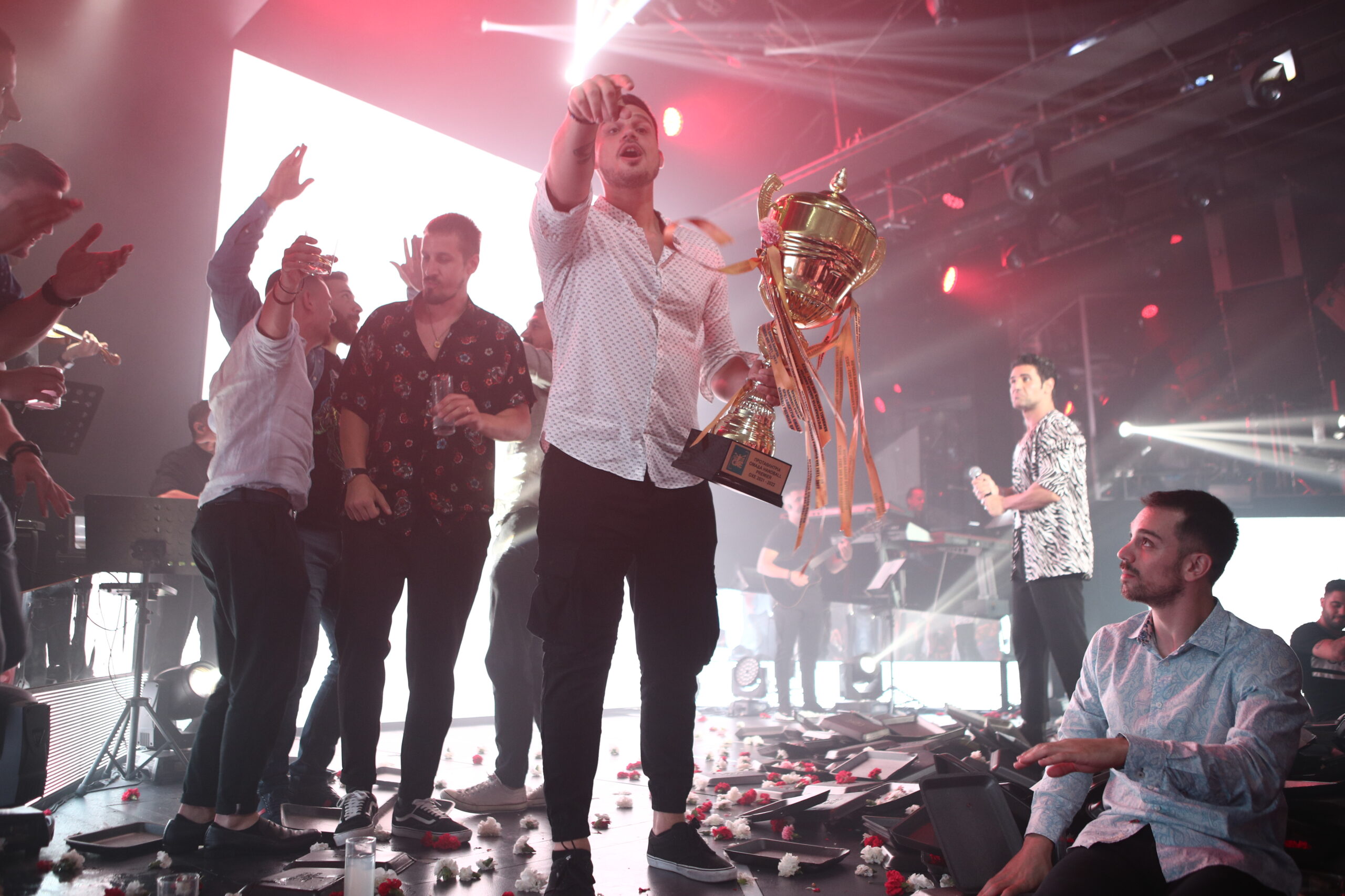 Οι παίκτες της ομάδας Χαντμπολ του Ολυμπιακού, διασκέδασαν με την ψυχή τους με την κούπα του Πρωταθλητή.
