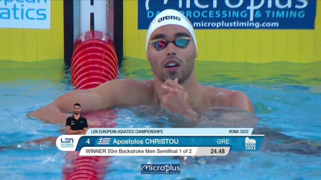 Ο Απόστολος Χρήστου θα βρεθεί στον τελικό του Ευρωπαϊκού Πρωταθλήματος που διεξάγεται στη Ρώμη, μετά την πρόκριση του και μάλιστα με τον καλύτερο χρόνο. Ο Έλληνας κολυμβητής σημείωσε χρόνο 24.48, λίγο πιο πάνω από το πανελλήνιο ρεκόρ (24.39), το οποίο κατέχει ο ίδιος. Ο Χρήστου δείχνει σε πολύ καλή φόρμα και μπορεί να… ονειρεύεται την κατάκτηση κάποιου μεταλλίου.