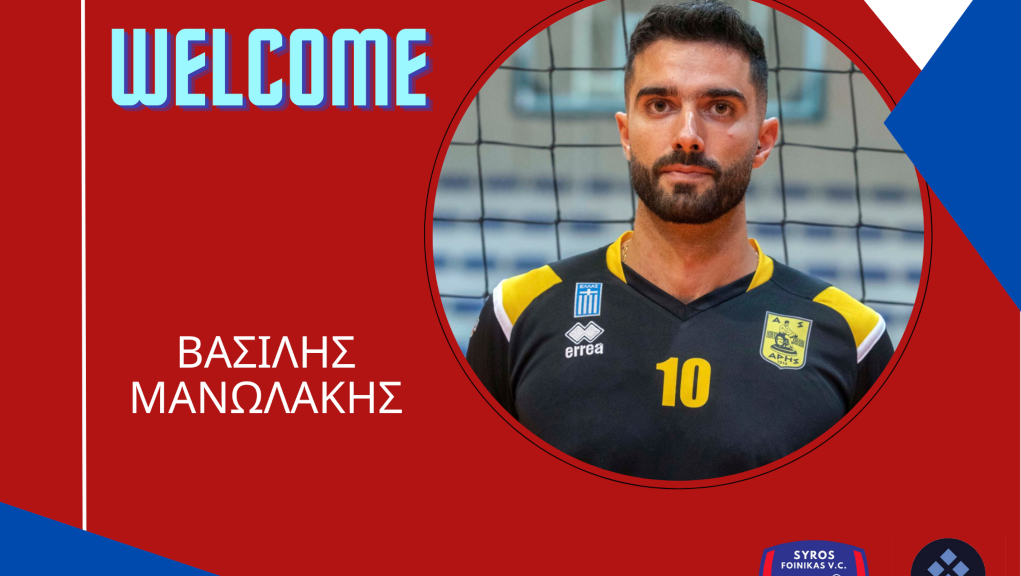 «Ο Φοίνικας Σύρου ΟΝΕΧ ανακοινώνει την έναρξη της συνεργασίας με τον Βασίλη Μανωλάκη για τη σεζόν 2022-23. Ο Βασίλης Μανωλάκης γεννήθηκε στις 08/12/94 στη Λήμνο και αγωνίζεται ως κεντρικός, έχοντας 2,01cm ύψος. Έκανε το ντεμπούτο του στην Ελπίς Αμπελοκήπων το 2018 με την οποία εξασφάλισε την άνοδο στην Α1, στην οποία αγωνίστηκε τη χρονιά 2019-20. Τη σεζόν 2020-21 παρέμεινε στη μεγάλη κατηγορία παίζοντας για τον ΟΦΗ, ενώ την περσινή χρονιά επέστρεψε στη Θεσσαλονίκη για λογαριασμό του Άρη.