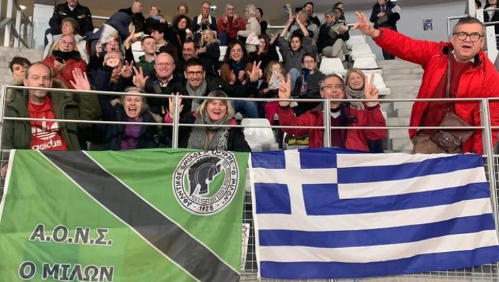 Περίπου 40 φίλοι του Μίλωνα που μένουν μόνιμα στη γαλλική πόλη, έδωσαν το παρών στο “Salle Sportive Métropolitaine” για να στηρίξουν την αγαπημένη τους ομάδα.