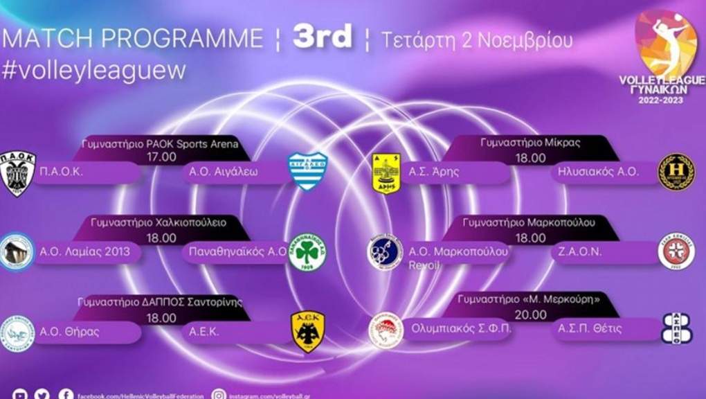 Αναλυτικά το πρόγραμμα της 3ης αγωνιστικής της Volley League γυναικών: