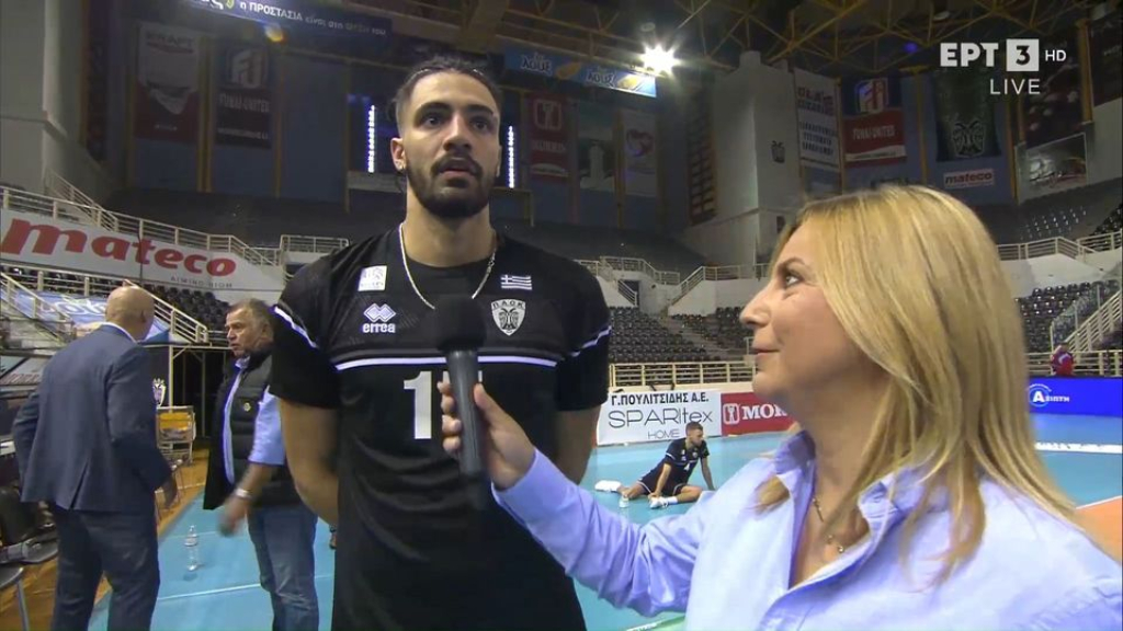 Ο διεθνής ακραίος, παραχώρησε δηλώσεις στην κάμερα της ΕΡΤ, μετά την νίκη με 3-0 σετ απέναντι στον Πήγασο, για την πρώτη αγωνιστική του ελληνικού πρωταθλήματος βόλεϊ.