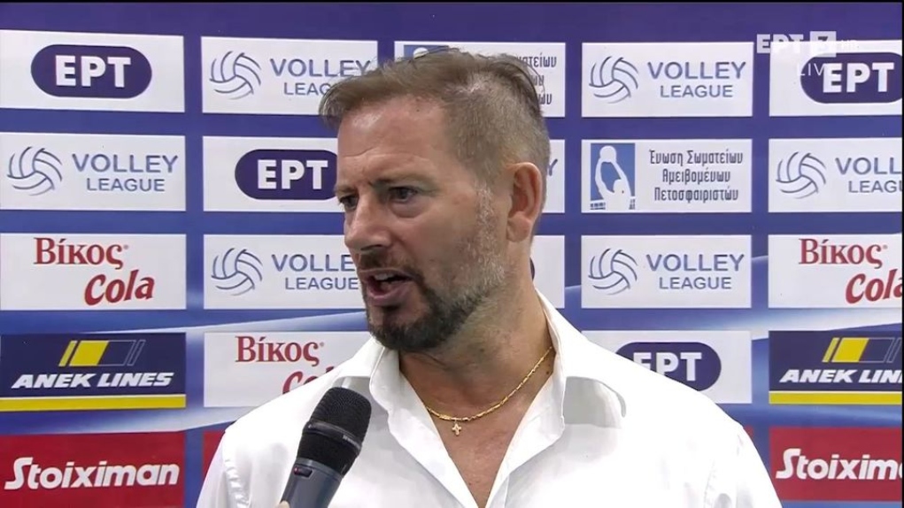 Μιλώντας στην κάμερα της ΕΡΤ, ο τεχνικός των Πειραιωτών σχολίασε τη νίκη της ομάδας του επί του Φοίνικα Σύρου, τονίζοντας πως ήταν ικανοποιημένος από τον τρόπο που αγωνίστηκαν οι παίκτες του στο τελευταίο σετ του αγώνα.