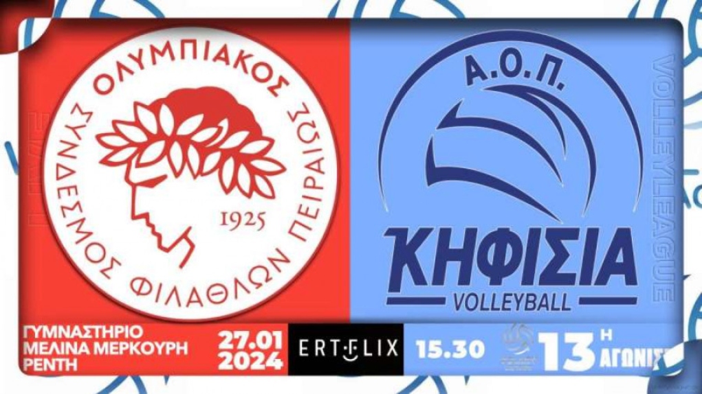 Ο Ολυμπιακός καλείται να αφήσει πίσω την απώλεια του Σούπερ Καπ και υποδέχεται την Κηφισιά στον αγώνα που θα ανοίξει το πρόγραμμα της 13ης αγωνιστικής στο πρωτάθλημα της Volley League. (27/1, 15:30, Εrtsports2). Ο Ολυμπιακός είναι πρωτοπόρος στη βαθμολογία της Volley League με 30 βαθμούς, έναντι 29 του Παναθηναϊκού που ακολουθεί. O A.O.Π. Κηφισιάς προέρχεται από 3 σερί νίκες με τις οποίες βελτίωσε τη βαθμολογική θέση. Χωρίς άγχος και πίεση πλέον η Κηφισιά θα προσπαθήσει να κάνει μία μεγάλη υπέρβαση. Η Κηφισιά έχει 11 βαθμούς και ισοβαθμεί στην 5η θέση με την Ορεστιάδα. Σε 37 αγώνες πρωταθλήματος μεταξύ των δύο ομάδων ο Ολυμπιακός προηγείται της Κηφισιάς στις νίκες με 29-8.