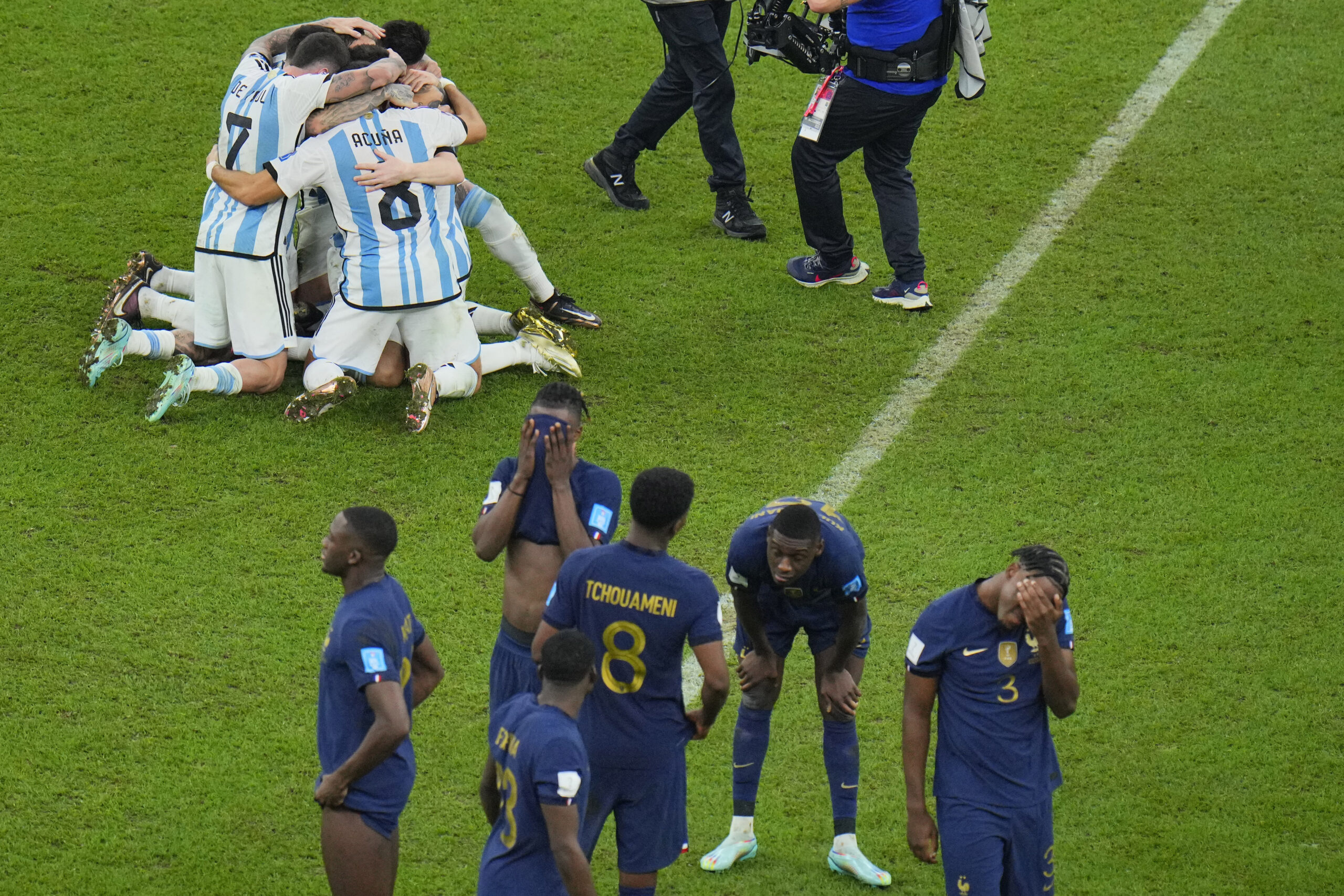 Οι Αργεντινοί ποδοσφαιριστές… ξεχύθηκαν στο στάδιο του Λουσαΐλ, μετά το συγκλονιστικό φινάλε του τελικού και χάρισαν μοναδικές φωτογραφίες, που αναδεικνύουν τόσο τη χαρά τους, όσο και τη συγκίνησή τους. Από την άλλη, η Γαλλία δεν κατάφερε να διατηρήσει τα… σκήπτρα της Παγκόσμιας πρωταθλήτριας, παρά την απίστευτη εμφάνιση του Κιλιάν Εμπαπέ.//