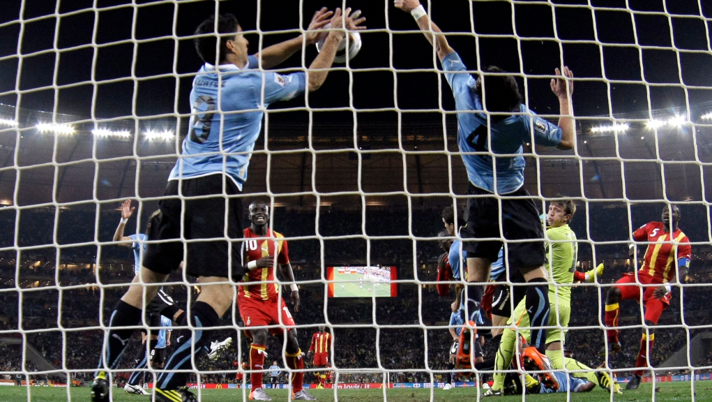 Νότια Αφρική 2010, Παγκόσμιο Κύπελλο, Γύρος των “16”, Γκάνα εναντίον Ουρουγουάης. Το παιχνίδι ήταν στο τελευταίο λεπτό της παράτασης στα προημιτελικά της διοργάνωσης με τον Λουίς Σουάρες να μετατρέπεται σε… τερματοφύλακα και να διώχνει με τα χέρια πάνω στην γραμμή ένα βέβαιο γκολ. Ο διαιτητής δίνει το πέναλτι, αλλά ο Γκιαν… αστόχησε. Στα πέναλτι η Ουρουγουάη ήταν πιο ψύχραιμη και πήρε την πρόκριση στα ημιτελικά.