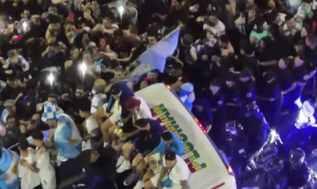 Υπό τους ήχους του “Μuchachos”, οι Πρωταθλητές Κόσμου επέστρεψαν στην Αργεντινή με τον κόσμο να τους αποθεώνει και τον Λιονέλ Μέσι να κατεβαίνει από το αεροπλάνο με το τρόπαιο αγκαλιά.//