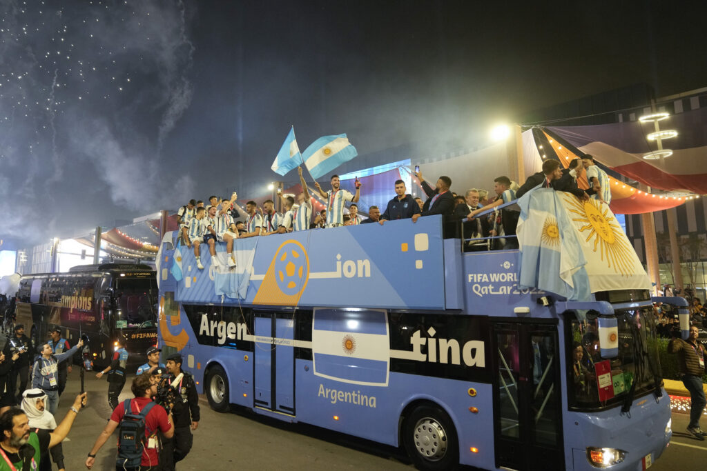 INICIA LA VUELTA A CASA DE LA COPA DEL MUNDO. El micro de la delegación argentina abandonó la Universidad de Qatar.