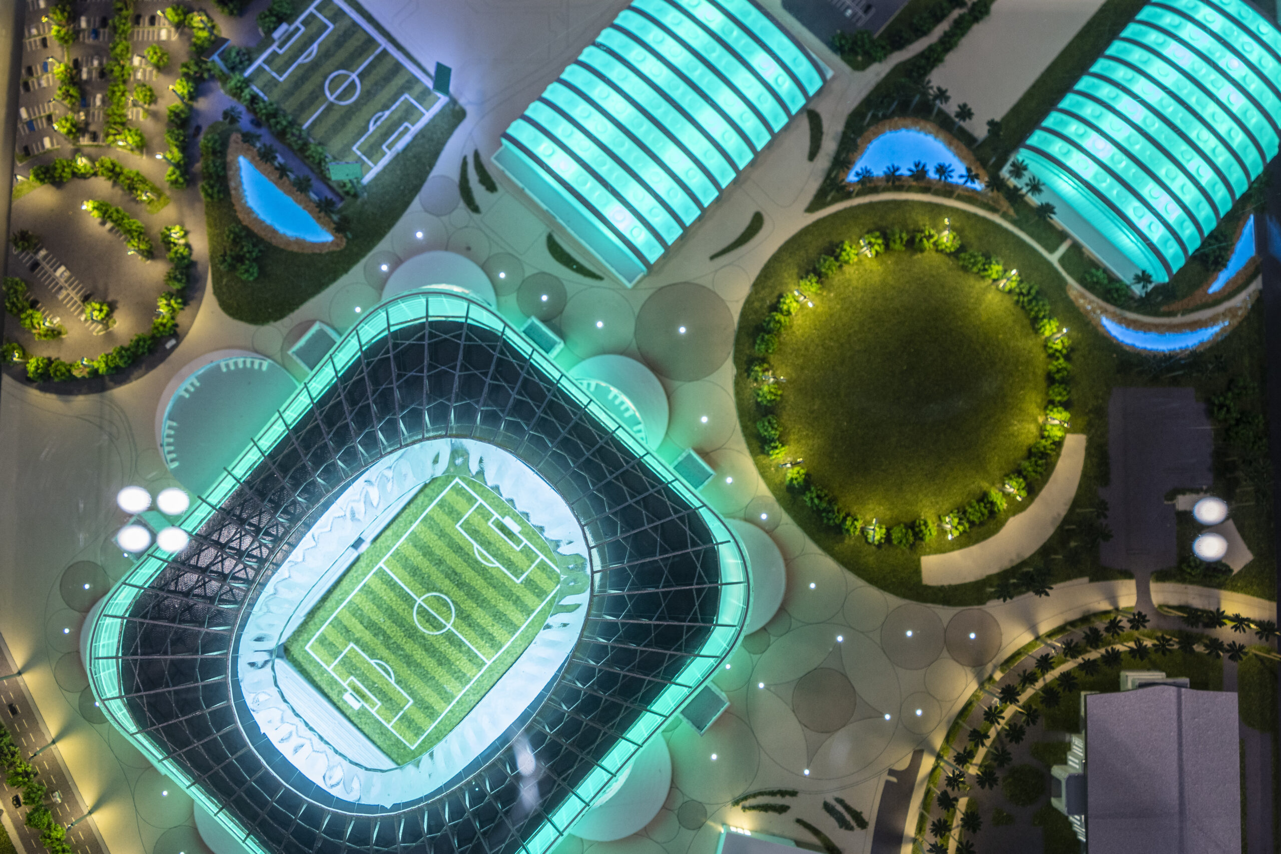 Το σχέδιο του σταδίου εμπνεύστηκε από το “gahfiya” ένα παραδοσιακό πλεκτό καπέλο που φορούν άνδρες και αγόρια σε όλη τη Μέση Ανατολή, ενώ είναι επίσης σύμβολο αξιοπρέπειας και ανεξαρτησίας. Η χωρητικότητα του σταδίου είναι 40.000 θέσεων και θα μειωθεί στην πορεία, προκειμένου να καλύψει τις τοπικές ανάγκες και να παρέχει ποιοτική αθλητική υποδομή στις αναπτυσσόμενες χώρες. Το υπόλοιπο γήπεδο των 20.000 θέσεων θα χρησιμοποιηθεί για να καλύψει ποδοσφαιρικές, αλλά και άλλες αθλητικές δραστηριότητες.