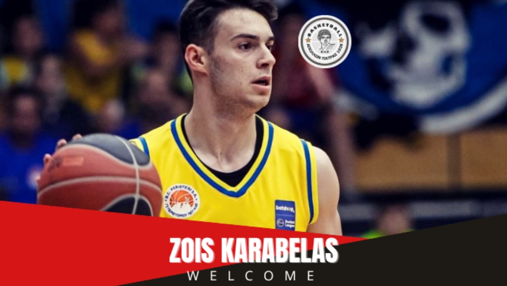 «Η ΚΑΕ Απόλλων Πατρών 1926, ανακοινώνει την έναρξη της συνεργασίας της με τον 21χρόνο (1.86, 27 Απριλίου 2001) ποιντ-γκαρντ, Ζώη Καράμπελα.