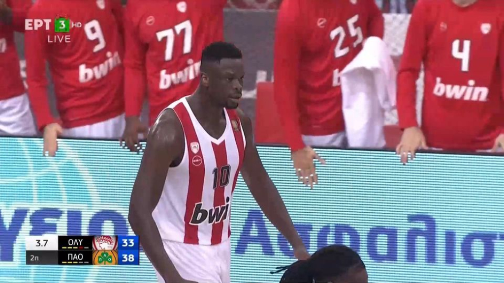 Ο 30χρονος σέντερ του Ολυμπιακού δεν έχει… αντίπαλο κάτω από το καλάθι, καθώς μετά από ασίστ του Σλούκα, πήρε τη μπάλα χαμηλά και κατάφερε ανάμεσα σε δύο να σκοράρει, αλλά και να κερδίσει φάουλ που του έδωσε ακόμα μία συμπληρωματική βολή.