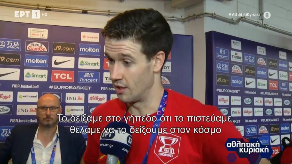 Ο σμολ φόργουορντ της Βαλένθια μίλησε αποκλειστικά στην κάμερα της ΕΡΤ λίγο μετά το φινάλε το μεγάλου τελικού του Eurobasket και εξέφρασε την μεγάλη ικανοποίησή του για την κατάκτηση της κορυφής της Ευρώπης.