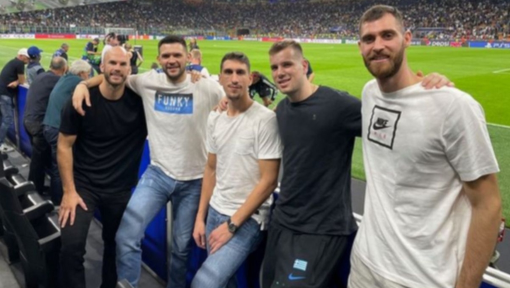 Οι Νικ Καλάθης, Κώστας Παπανικολάου, Γιαννούλης Λαρεντζάκης, Δημήτρης Αγραβάνης, Γιώργος Παπαγιάννης και τα αδέρφια Αντετοκούνμπο, βρέθηκαν στο “Τζουζέπε Μεάτσα” προκειμένου να παρακολουθήσουν την πρεμιέρα των “νερατζούρι” στους ομίλους του Champions League.