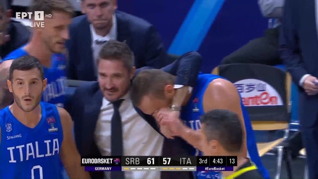 Χωρίς τον προπονητή της συνεχίζει τον αγώνα κόντρα στην Σερβία η Ιταλία, καθώς στην τρίτη περίοδο ο Ιταλός τεχνικός αποβλήθηκε, φίλησε όλο τον πάγκο και αποχώρησε με κλάματα προς τα αποδυτήρια.
