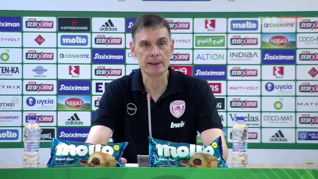 Ο 57χρονος προπονητής του Ολυμπιακού, σε συνέντευξη Τύπου που παραχώρησε μετά το τέλος του παιχνιδιού στο ΟΑΚΑ, σχολίασε συνοπτικά την εικόνα του παιχνιδιού και έδωσε το σύνθημα εν όψει του τρίτου τελικού στο ΣΕΦ.