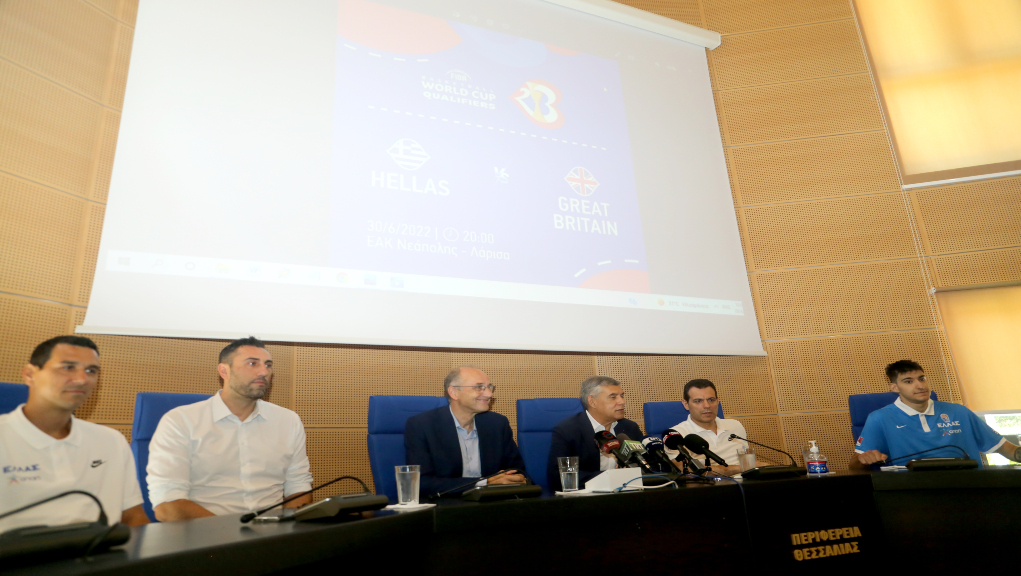 Στα γραφεία της Περιφέρειας Θεσσαλίας πραγματοποιήθηκε η επίσημη συνέντευξη τύπου της Εθνικής Ομάδας Μπάσκετ των Ανδρών για τον αυριανό αγώνα (20:00) απέναντι στη Μεγάλη Βρετανία.