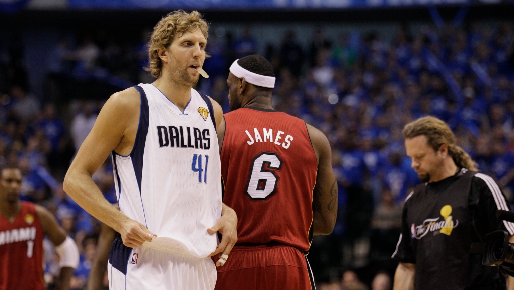 Ο Λεμπρόν Τζέιμς, κλήθηκε μετά την αναμέτρηση των Λος Άντζελες Λέικερς κόντρα στους Ντάλας Μάβερικς, να σχολιάσει το άγαλμα, που στήθηκε έξω από το γήπεδο στο Τέξας, προς τιμήν του Ντιρκ Νοβίτσκι.