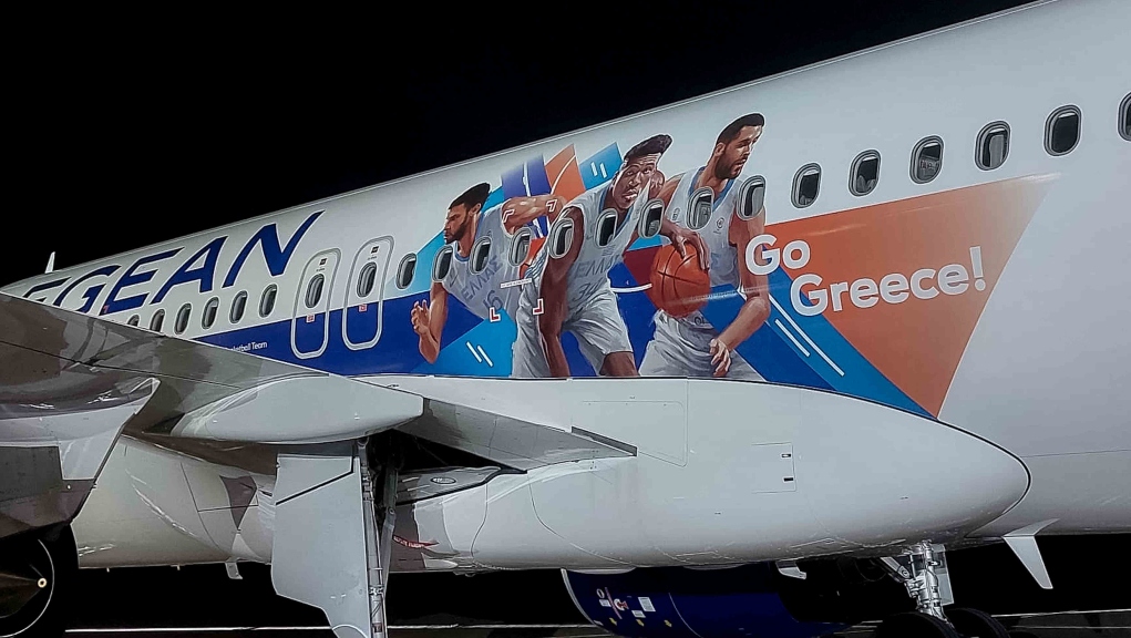 Συγκεκριμένα έγινε η παρουσίαση ενός νέου αεροσκάφους, το οποίο έχει επάνω τα πρόσωπα έξι παικτών της Εθνικής μας ομάδας του μπάσκετ. Γιάννης και Θανάσης Αντετοκούνμπο, Νικ Καλάθης, Γιώργος Παπαγιάννης, Κώστας Παπανικολάου και Κώστας Σλούκας απεικονίζονται στις δύο πλευρές του αεροπλάνου, τρεις από τη μία και τρεις από την άλλη πλευρά.