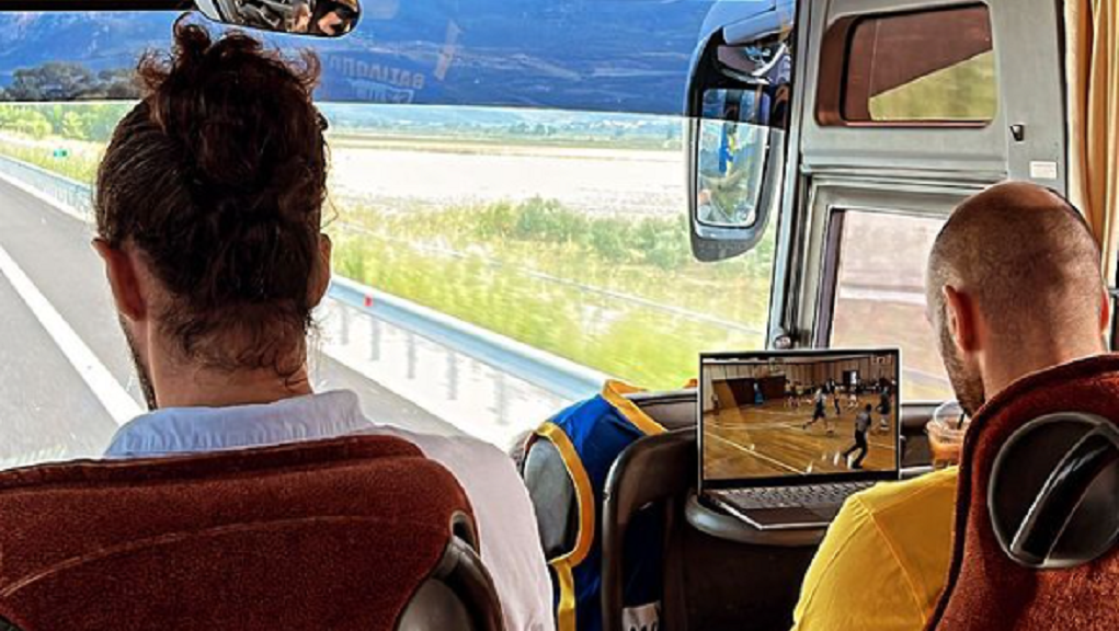 Μπορεί το βασικό στάδιο της προετοιμασίας του Περιστερίου να ολοκληρώθηκε και η ομάδα να πήρε τον δρόμο της επιστροφής, όμως, ο προπονητής της δεν σταματάει να δουλεύει ούτε… μέσα στο πούλμαν.
