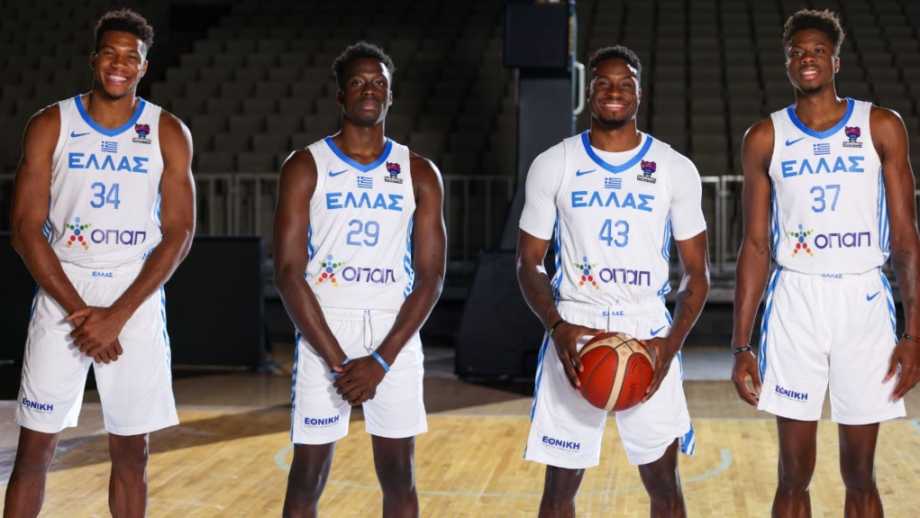 Ο Γιάννης Αντετοκούνμπο ποζάρει με τους Θανάση, Κώστα και Άλεξ, φορόντας τη νέα ολόλευκη εμφάνιση της Εθνικής Ελλάδος, συνοδευόμενη από ένα συγκινητικό μήνυμα.