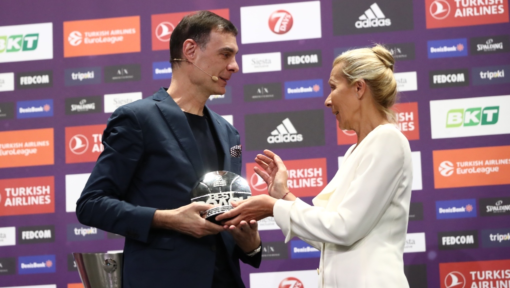 Το βραβείο του καλύτερου προπονητή της χρονιάς στην Ευρωλίγκα παρέλαβε ο Γιώργος Μπαρτζώκας έπειτα από ψηφοφορία συναδέλφων του. Το βραβείο παρέδωσε η σύζυγος του άλλοτε προπονητή των «ερυθρολεύκων», Νένα Ίβκοβιτς.
