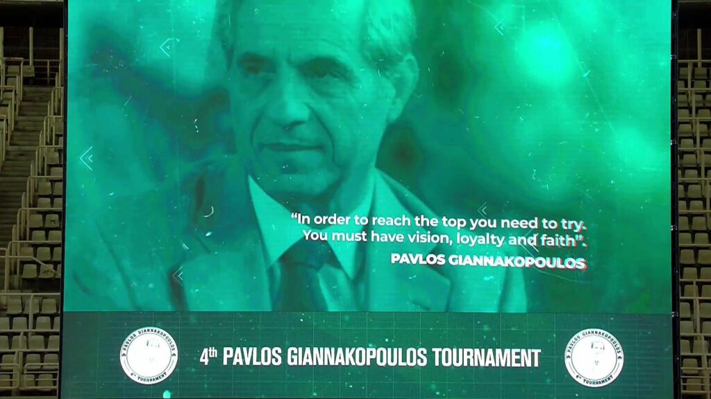 Λίγο πριν την έναρξη της πρώτης ημιτελική αναμέτρησης του τουρνουά “Παύλος Γιαννακόπουλος” η ΚΑΕ Παναθηναϊκός πρόβαλε ένα συγκινητικό βίντεο για τον ιστορικό παράγοντας της ομάδας.