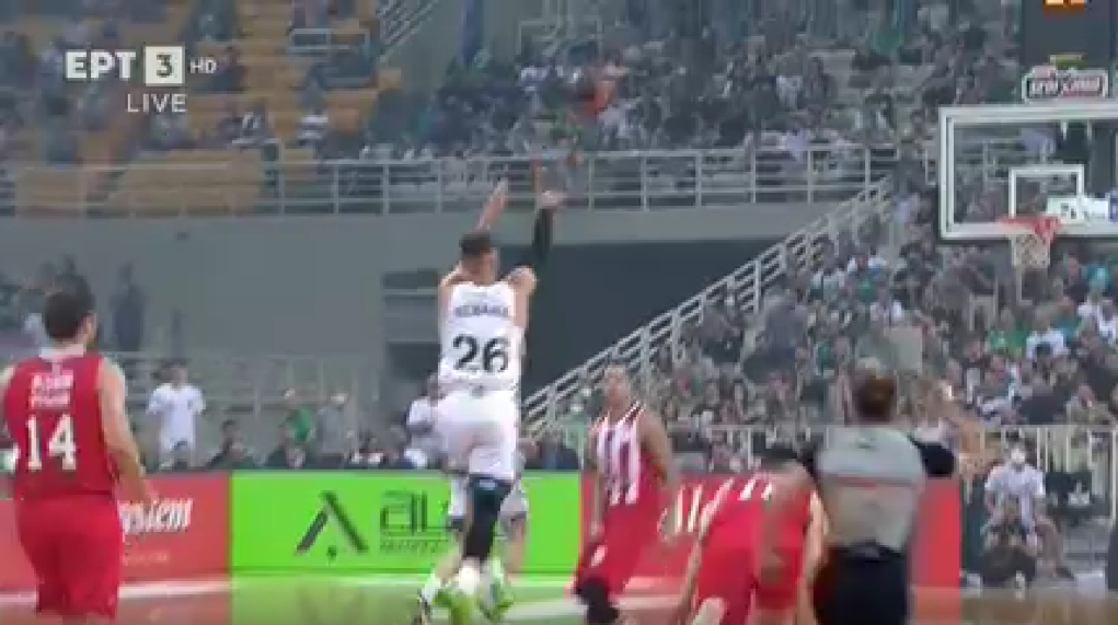 Ο Νεμάνια Νέντοβιτς σημείωσε απίστευτο τρίποντο από το κέντρο του γηπέδου, δίνοντας προβάδισμα στους “πράσινους” κόντρα στον Ολυμπιακό με το τέλος του πρώτου δεκαλέπτου.