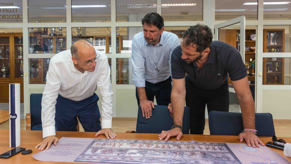 Η εικόνα ήταν οι δύο πρόεδροι των ομάδων που κρατούσαν μια αφίσα, που απεικονιζόταν ένα ψηφιδωτό δάπεδο με παραστάσεις καλλιτεχνικών και αθλητικών γεγονότων από την Πάτρα, στα τέλη του δευτέρου και στις αρχές του τρίτου αιώνα μ.Χ.