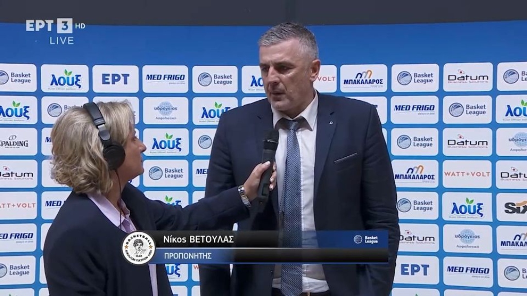 Ο Απόλλων Πάτρας γνώρισε την ήττα με 87-61 από τον Ολυμπιακό στην πρεμιέρα της Basket League. Ο Νίκος Βετούλας μίλησε στην κάμερα της ΕΡΤ. μετά το τέλος του παιχνιδιού και τόνισε πως το εν λόγω ματς βοήθησε την ομάδα του να δει τις αδυναμίες που έχει.