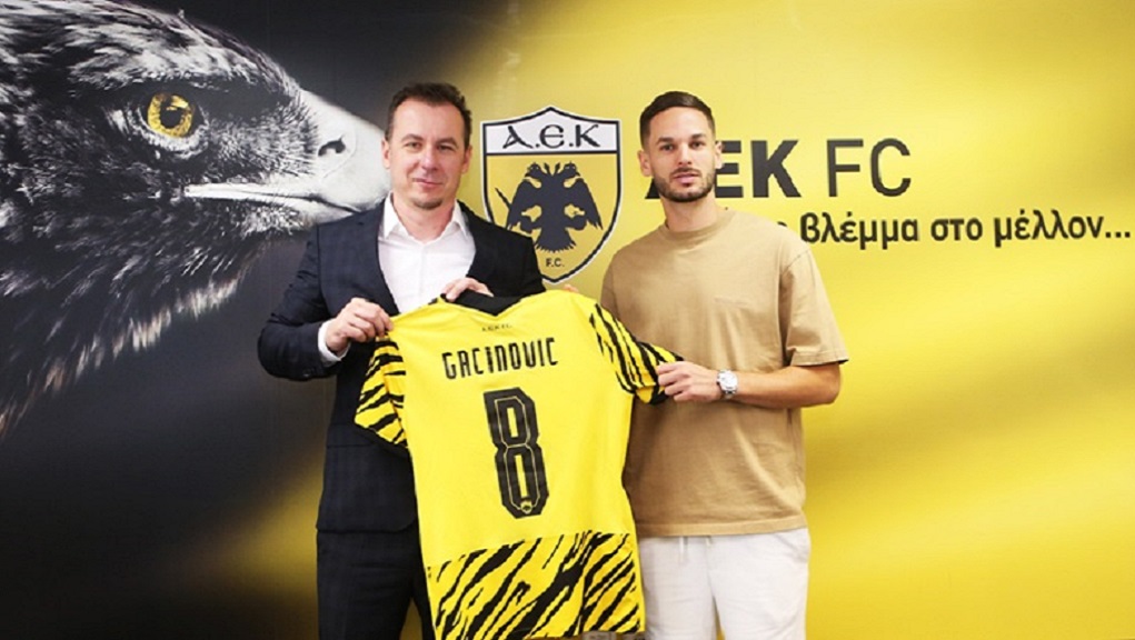«Η ΠΑΕ ΑΕΚ ανακοινώνει την αγορά του ποδοσφαιριστή Μιγιάτ Γκατσίνοβιτς από τη γερμανική Χόφενχαϊμ. Ο Σέρβος μέσος υπέγραψε συμβόλαιο συνεργασίας με την ομάδα μας έως το καλοκαίρι του 2026.