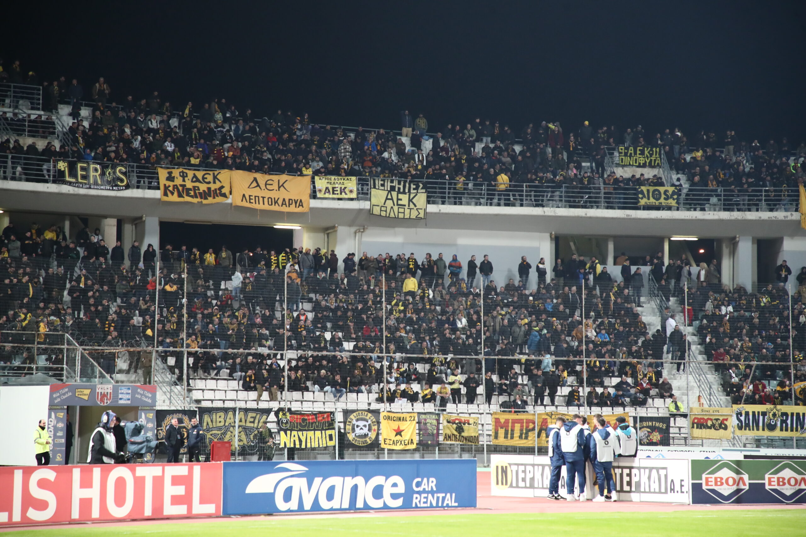 Η ΑΕΚ αντιμετωπίζει σε λίγα λεπτά το ΝΠΣ Βόλο και το Πανθεσσαλικό στάδιο έχει αρχίσει ήδη να θυμίζει «OPAP Arena». Η “Ένωση” θα έχει τη συμπαράσταση περισσότερω από οκτώ χιλιάδων φιλάθλων της στην αναμέτρηση με τους Βολιώτες, που θα τη βοηθήσουν σημαντικά, να πάρει τη νίκη, που θα την κρατήσει κοντά στην κορυφή.