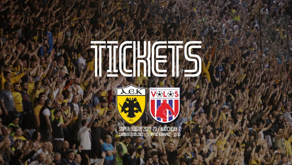 «Τέθηκε σε κυκλοφορία ο περιορισμένος αριθμός διαθέσιμων εισιτηρίων για τον αγώνα ΑΕΚ – Βόλος ΝΠΣ, που θα διεξαχθεί στο γήπεδο «Γιώργος Καμάρας» της Ριζούπολης (27/8 – 21.30).