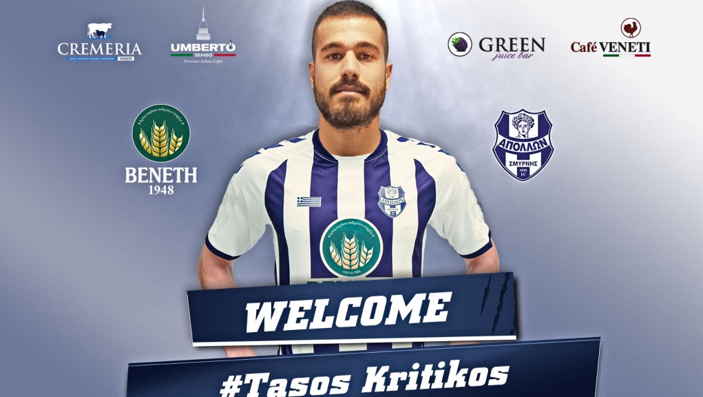 «Η ΠΑΕ Απόλλων Σμύρνης ανακοινώνει την απόκτηση του ποδοσφαιριστή Τάσου Κρητικού. Γεννημένος στις 25 Ιανουαρίου 1995, αγωνίζεται ως επιθετικός. Κατά την περασμένη αγωνιστική περίοδο αγωνιζόταν στην Ξάνθη, ενώ την προηγούμενη σεζόν έπαιξε στη Super League 1 με τη φανέλα του ΝΠΣ Βόλος. Στη Super League 1 αγωνίστηκε και ως παίκτης της Λάρισας και του ΠΑΣ Γιάννινα. Υπήρξε επίσης ποδοσφαιριστής της Δόξας Δράμας, του Πανσερραϊκού και της Αναγέννησης Καρδίτσας. Στο παρελθόν έχει φορέσει τη φανέλα της Εθνικής Ελπίδων».