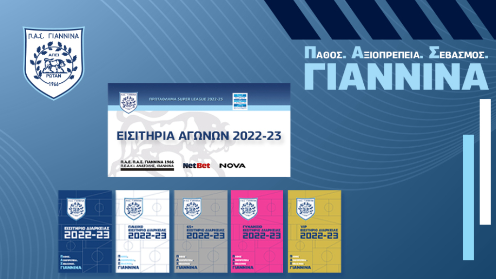 «Η Π.Α.Ε. Π.Α.Σ. ΓΙΑΝΝΙΝΑ 1966 ανακοινώνει την έναρξη διάθεσης των εισιτηρίων για την 13η αγωνιστική του πρωταθλήματος Super League Ελλάδας 2022-23 και τον αγώνα με τον ΑΡΗ στο Ε.Σ.Ι. «Οι ΖΩΣΙΜΑΔΕΣ», την ΚΥΡΙΑΚΗ 13/11 στις 16.00.