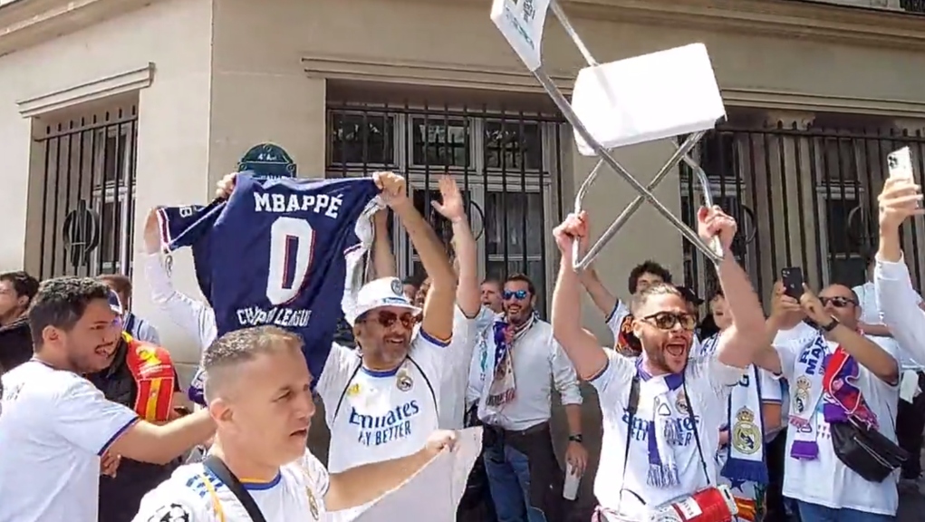 Στους δρόμους του Παρισιού παρέες οπαδών τόσο των «reds» όσο και της «βασίλισσας» δίνουν το δικό τους στίγμα. Οι φίλοι της Ρεάλ άρχισαν να ζεσταίνονται από νωρίς βάζοντας στο παιχνίδι μια…πλαστική καρέκλα αλά Αλάμπα, αλλά και μια φανέλα του κεντρικού προσώπου του μεταγραφικού ενδιαφέροντος, Κιλιάν Εμπαπέ, θυμίζοντας σε όλους ότι ο σούπερ σταρ της Παρί Σεν Ζερμέν έχει «0 Τσάμπιονς Λιγκ» όπως αναγράφεται στη φανέλα.