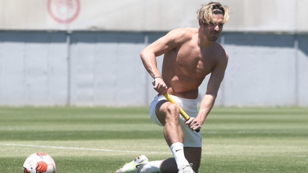 Ο Τζακ Γκρίλις μετά την επίσκεψη του στη Σαντορίνη και την φωτογραφία που έβγαλε με κασκόλ του Πανθηραϊκού, του οποίου χρησιμοποίησε και το γήπεδο, βρέθηκε στο Ρέντη. Σε συνεννόηση με τους ανθρώπους του Ολυμπιακού και σε συνδυασμό με το διήμερο ρεπό που έδωσε ο Μαρτίνς στους ποδοσφαιριστές του, προπονήθηκε στις εγκαταστάσεις των “ερυθρόλευκων”.