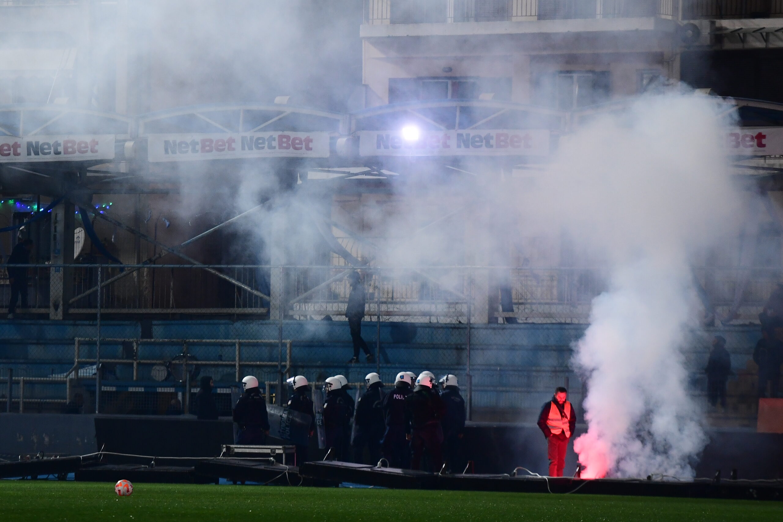 Ένταση προκλήθηκε ανάμεσα στην αστυνομία και τους φιλάθλους των “ερυθρολεύκων” που βρίσκονται στο γήπεδο, με αποτέλεσμα να γίνει και χρήση χημικών, ώστε να ηρεμήσουν τα πνεύματα.
