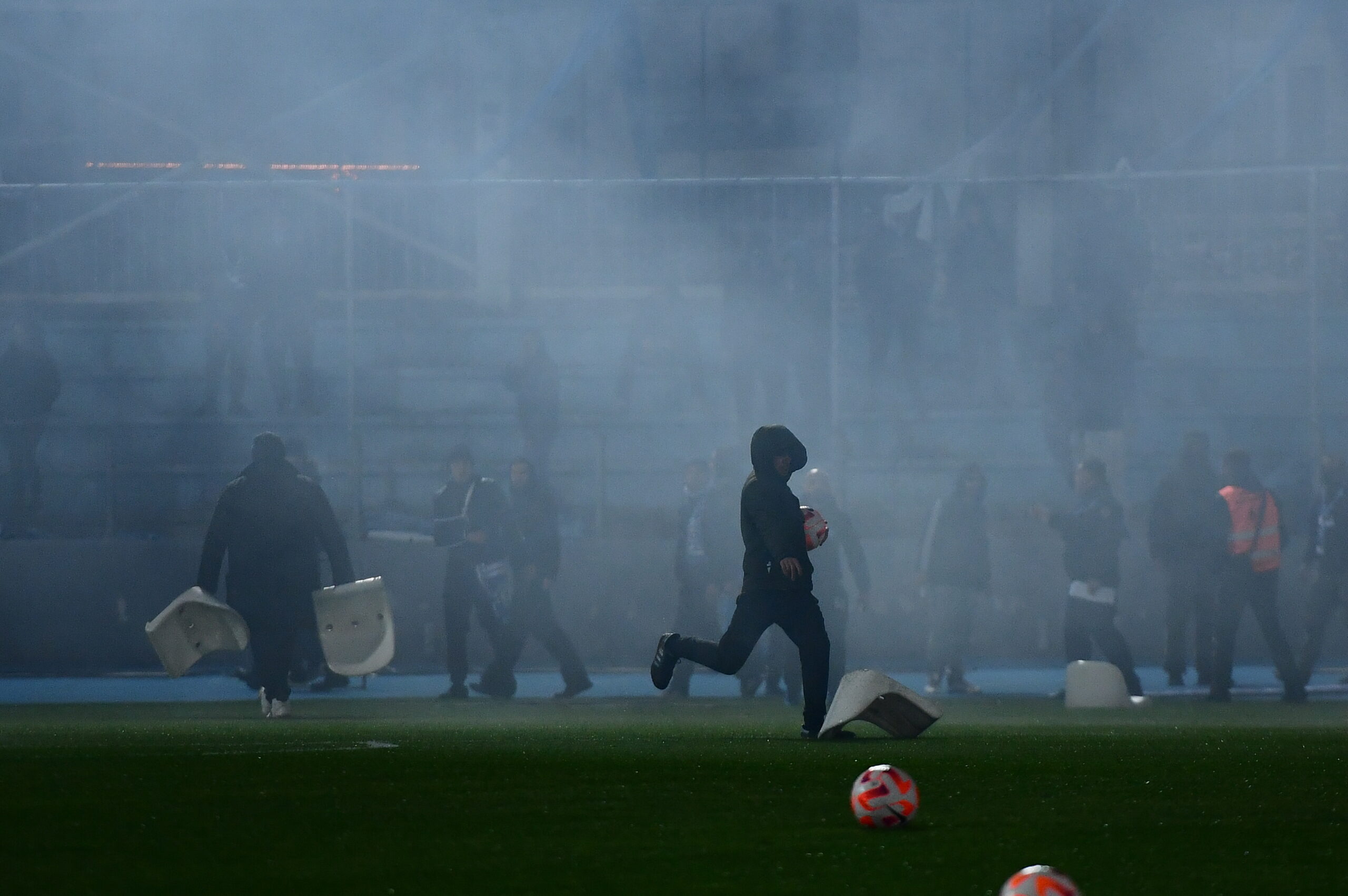 Οι φίλαθλοι του Ολυμπιακού που βρίσκονται στο γήπεδο, συγκρούστηκαν με τις δυνάμεις της αστυνομίας, με αποτέλεσμα να προκληθούν μικρής κλίμακας επεισόδια και να γίνει χρήση χημικών από τους αστυνομικούς, ώστε να ηρεμήσει η κατάσταση και να μπορέσουν οι δύο ομάδες να συνεχίσουν το ζέσταμά τους.//