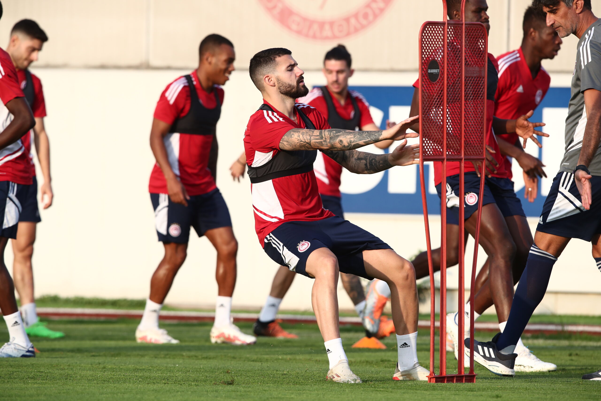 Ο Ολυμπιακός πραγματοποίησε την τελευταία του προπόνηση στου Ρέντη και ολοκλήρωσε την προετοιμασία του ενόψει του αυριανού αγώνα κόντρα στον Απόλλωνα Λεμεσού, για τον επαναληπτικό των πλέι οφ του Γιουρόπα Λιγκ.