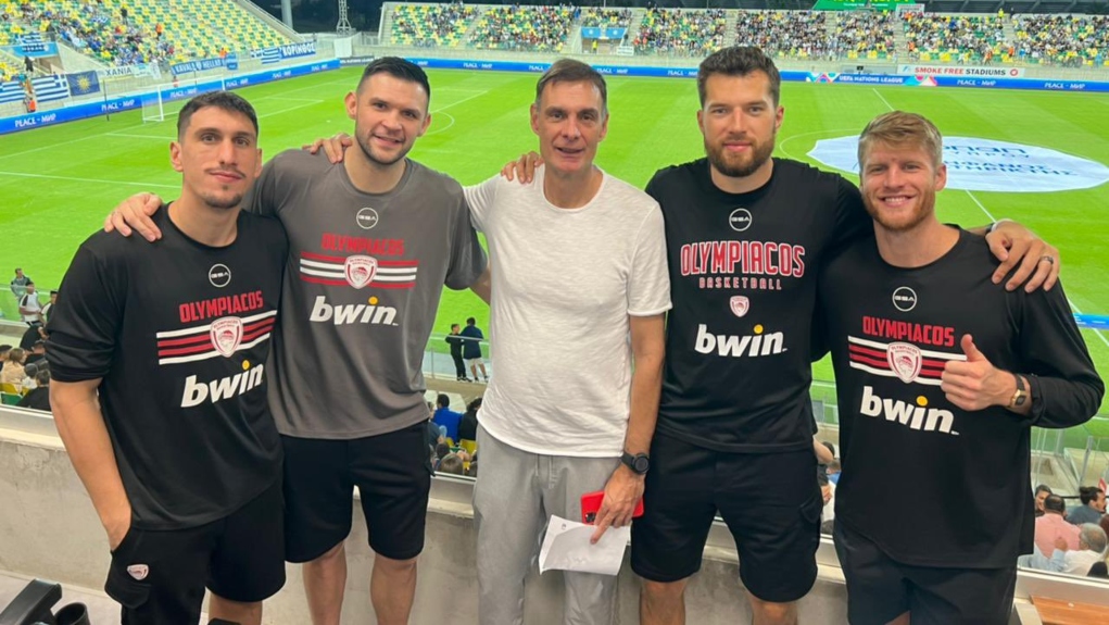 Συγκεκριμένα, η ΚΑΕ Ολυμπιακός ανέβασε φωτογραφία στον επίσημο λογαριασμό που διατηρεί στα σόσιαλ μίντια με τους Μπαρτζώκα, Παπανικολάου, Λαρεντζάκη, Γουόκαπ και Πίτερς, οι οποίοι βρέθηκαν στο ΑΕΚ Αρένα για να παρακολουθήσουν το παιχνίδι της Εθνικής κόντρα στην Κύπρο, στο πλαίσιο της 5ης αγωνιστικής του UEFA Nations League 2022-23.