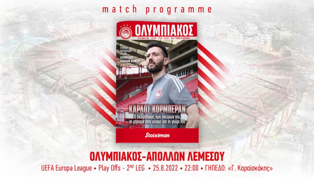 Διαβάστε το “Match Programme” της αναμέτρησης Ολυμπιακός – Απόλλων Λεμεσού, του δεύτερου αγώνα των δύο ομάδων για τα πλέι οφ του Γιουρόπα Λιγκ.