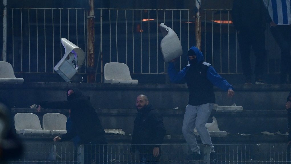 Ο Έλληνας διαιτητής ζήτησε από τους βοηθούς του και τις δύο ομάδες να τον ακολουθήσουν στα αποδυτήρια, μέχρι να ηρεμήσει η κατάσταση.