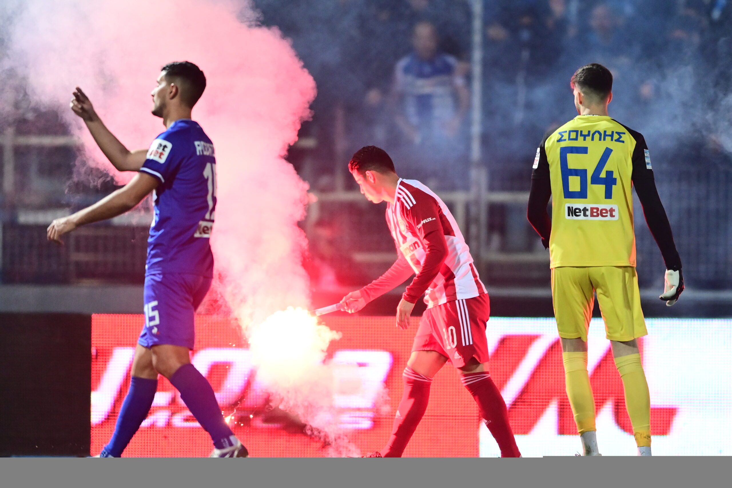 Ο Κουμπαράκης διέκοψε, για την ώρα, προσωρινά την αναμέτρηση στους «Ζωσιμάδες» ανάμεσα στον ΠΑΣ Γιάννινα και τον Ολυμπιακό, καθώς μέχρι το 15′ τα επεισόδια στην κερκίδα συνεχίζονταν και μάλιστα οι οπαδοί πετούσαν και φωτοβολίδες στο γήπεδο.