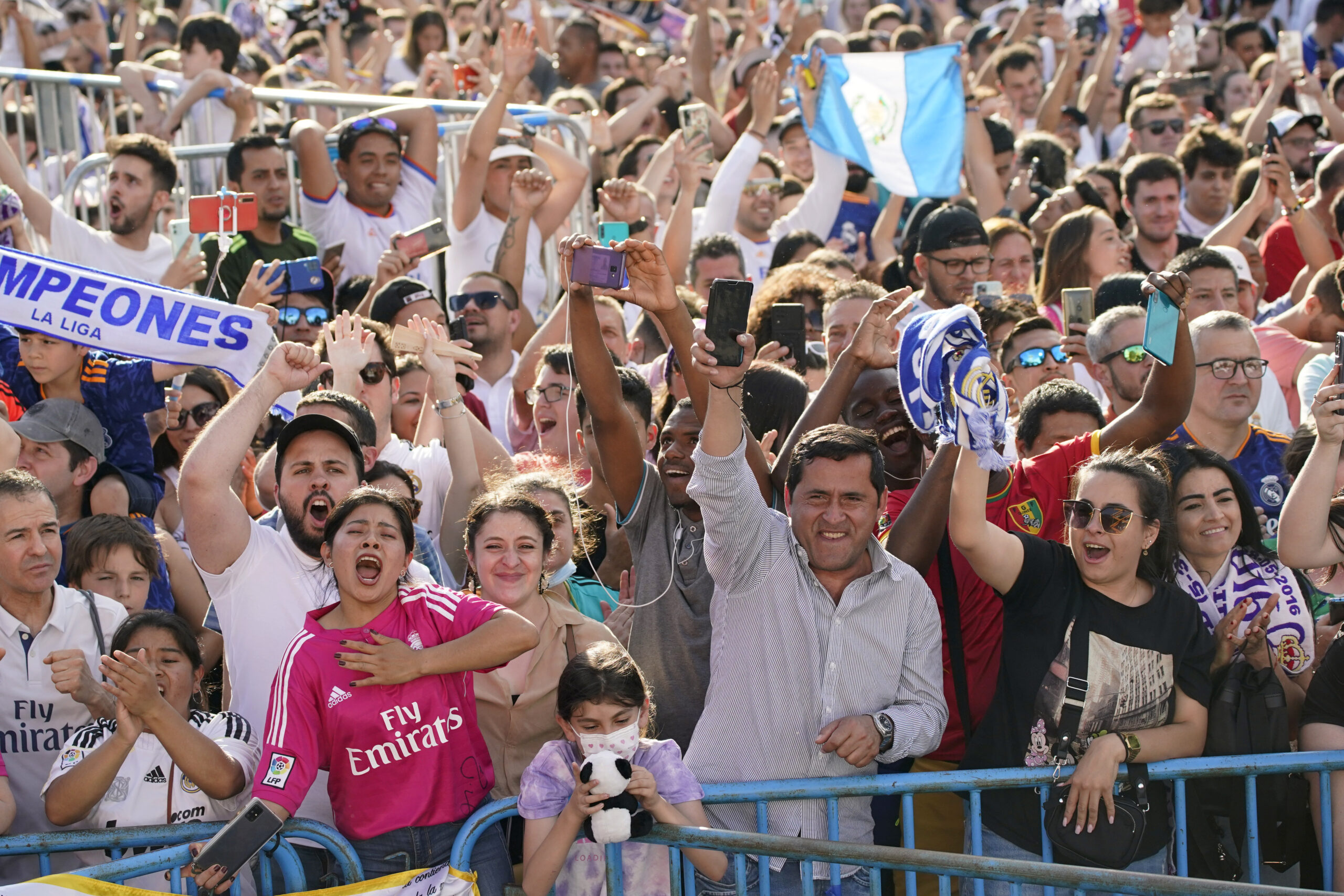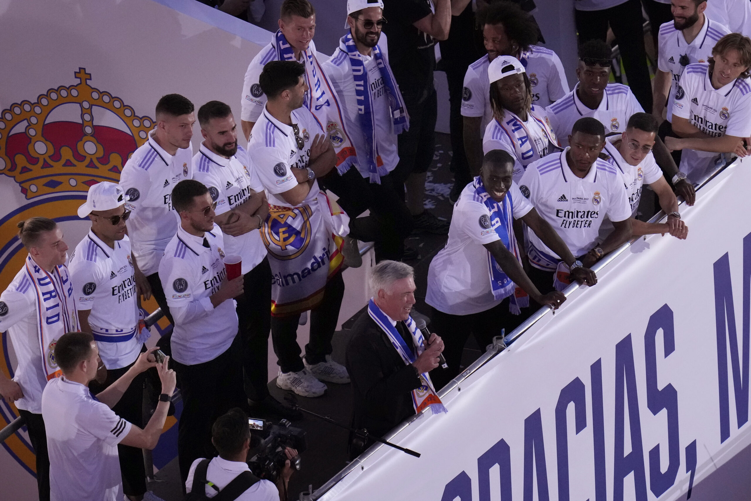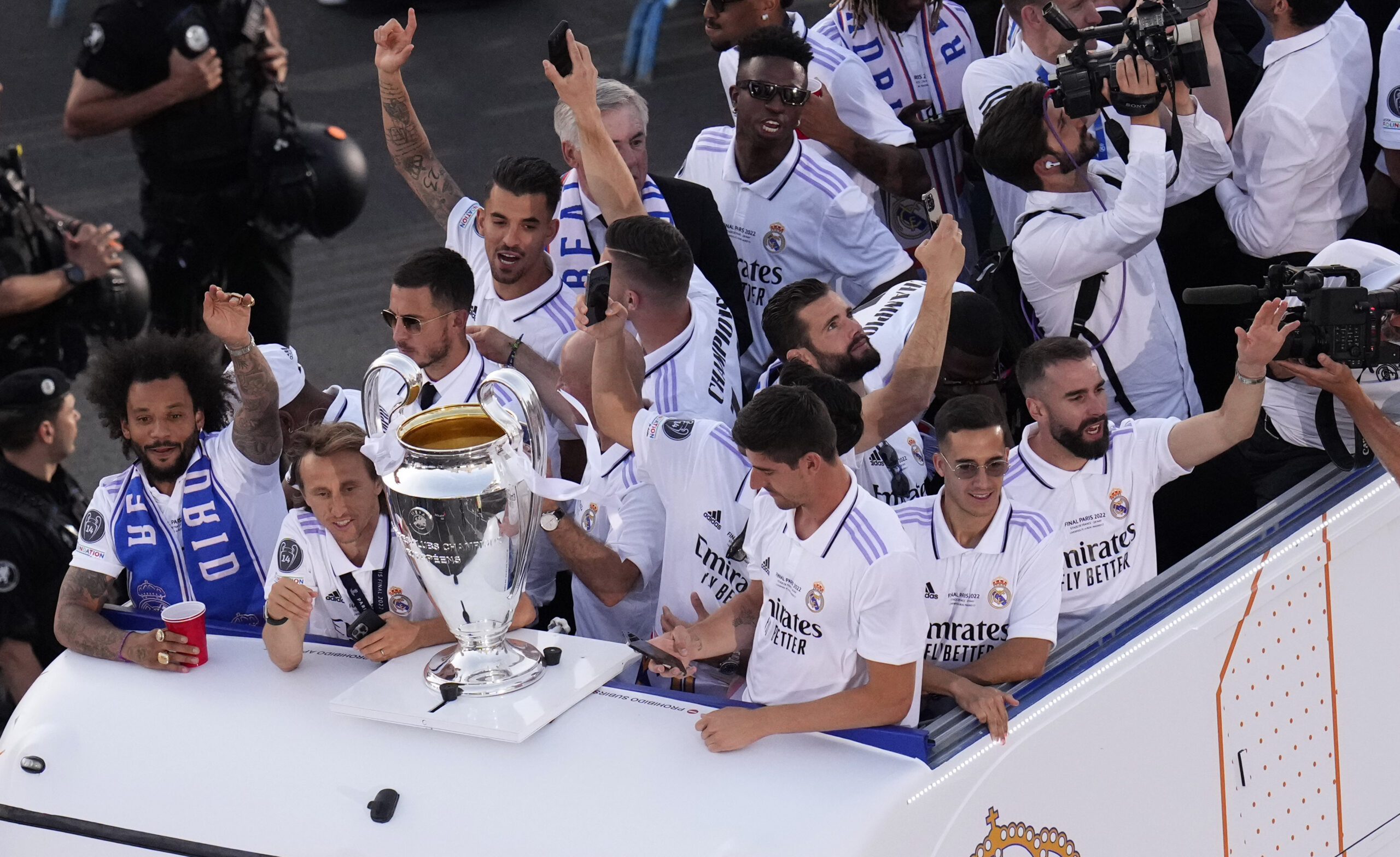 Στιγμές από το γλέντι των πρωταθλητών Ευρώπης μετά την άφιξή τους στην Ισπανική πρωτεύουσα.