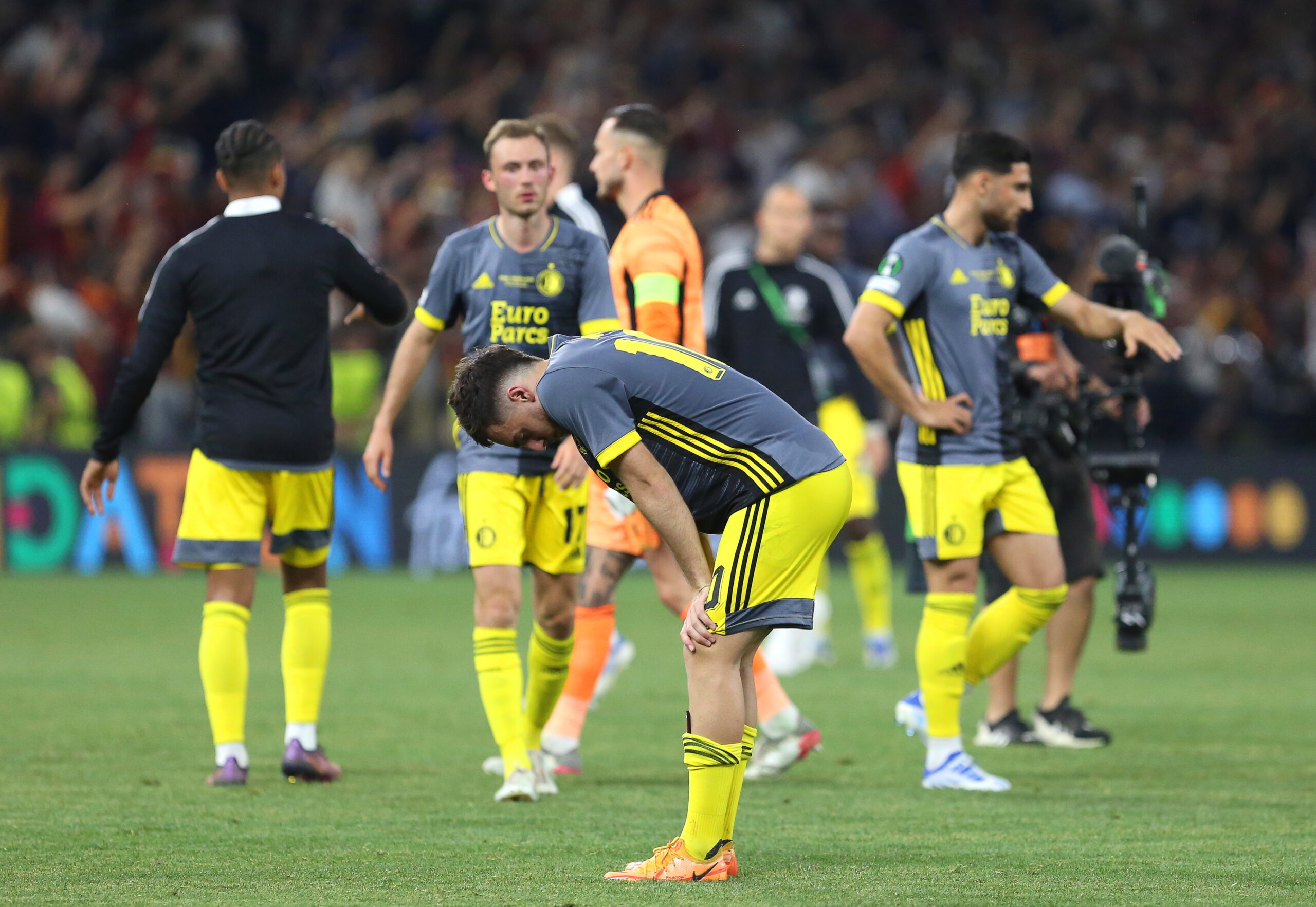 Δείτε φωτογραφίες από το πάρτι των «τζιαλορόσι» στο «Αρένα Κομπετάρε», τη στιγμή της στέψης, καθώς και τις αντιδράσεις των παικτών της Φέγενορντ μετά την ήττα στον τελικό.