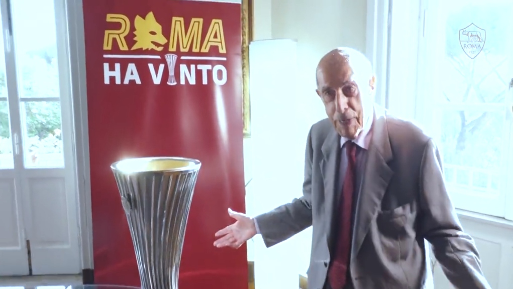 Οι “τζιαλορόσι” βρήκαν έναν ξεχωριστό τρόπο για να τιμήσουν τον μεγαλύτερο ηλικιακά κάτοχο διαρκείας του συλλόγου, με τον με τον γενικό διευθυντή των Ρωμαίων, Τιάγκο Πίντο, να τον επισκέπτεται έχοντας μαζί του τρόπαιο του Κόνφερενς Λιγκ, που κατέκτησε τον περασμένο Μάιο η ομάδα του Μουρίνιο.
